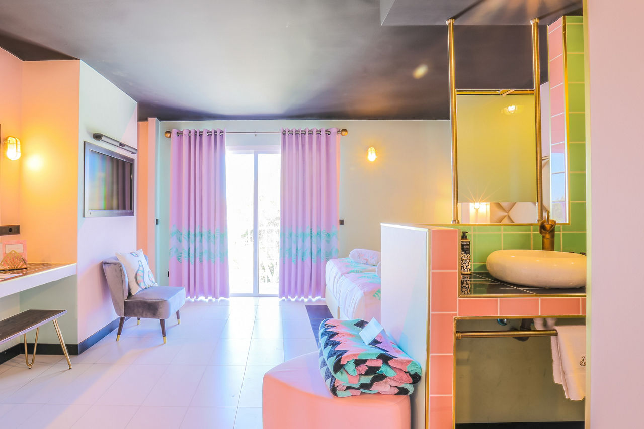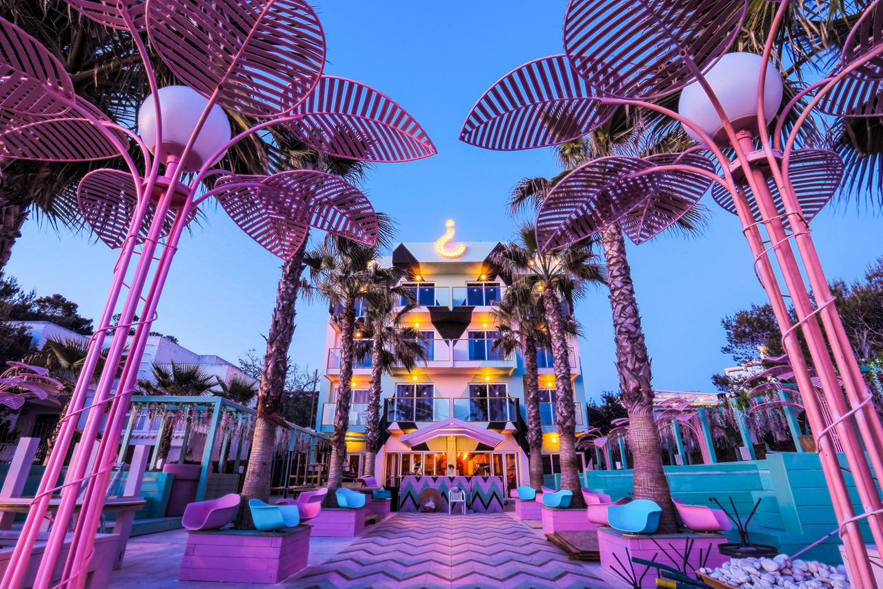 Nothing says iconic Ibiza quite like Wi-Ki-Woo. Luxury rooms and dreamy décor go hand in hand in this pastel paradise. Spend days chilling poolside under pink palm leaves, and nights sipping signature cocktails at sunset.