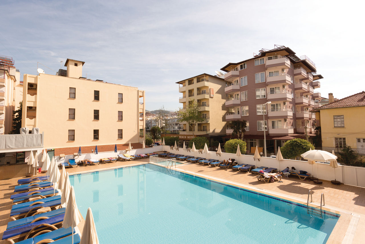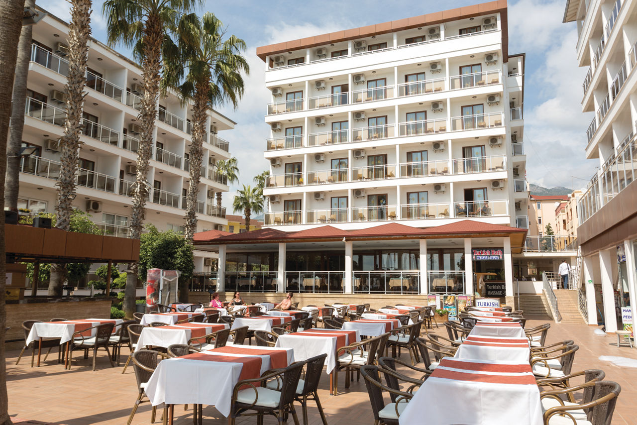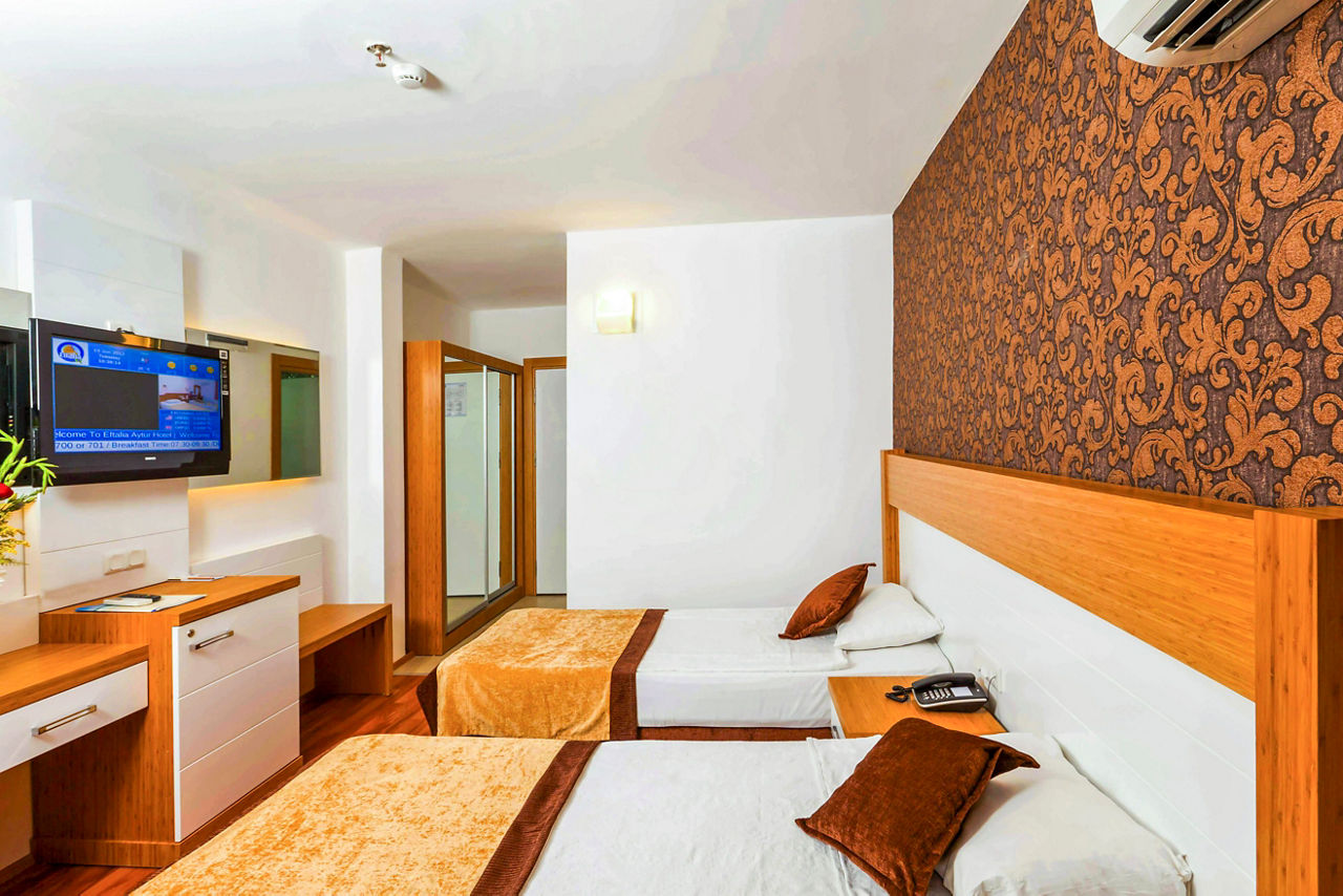 Just a stone's throw from the sun-soaked beach, Eftalia Downtown Hotel boasts a prime location in Alanya's vibrant resort centre, offering easy access to local attractions, shopping, and dining. The hotel features comfortable, well-furnished rooms, perfect for a relaxing stay. Guests can unwind in the lovely outdoor pool area, ideal for lounging or cooling off. With all the amenities you need on-site, whether you're after a casual meal or a refreshing drink, it's all at your fingertips. Eftalia Downtown is the perfect base for couples seeking both beachside relaxation and city excitement.Standard Double or Twin rooms sleep up to 2 adults and 1 child and have bathroom containing a shower, hairdryer, air conditioning, flat screen television, safety deposit box*, free Wi-Fi and balcony. Family rooms sleeping up to 3 adults or 2 adults and 2 children Sole Use rooms are also available.