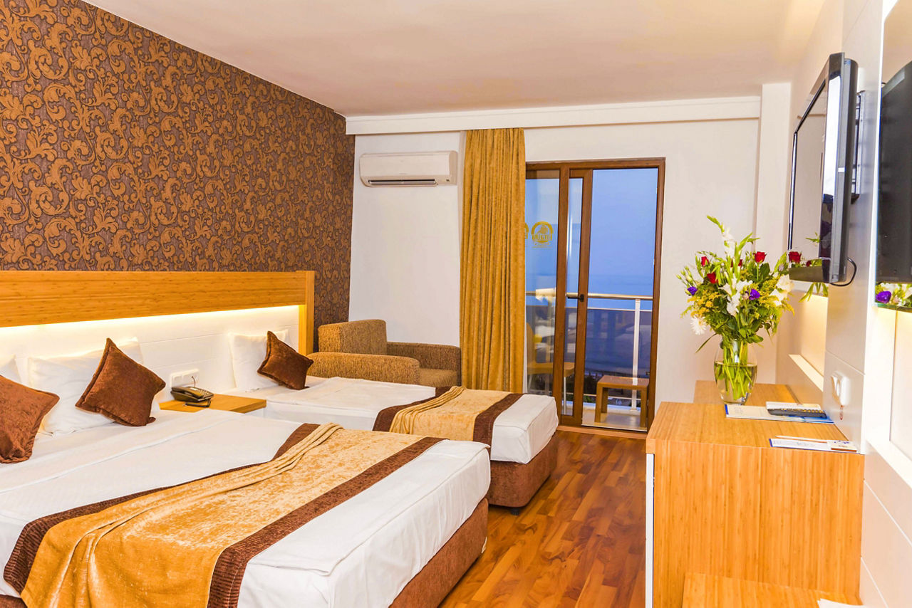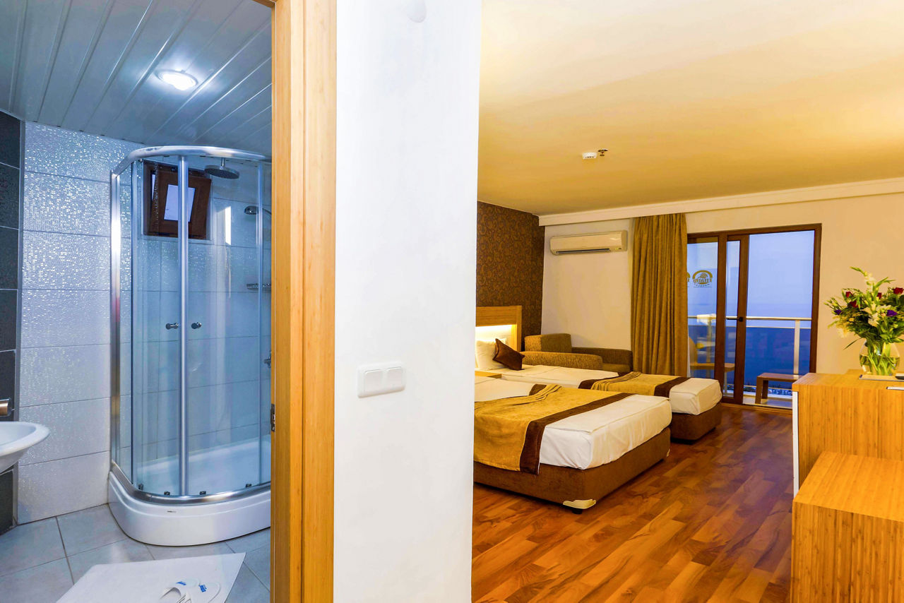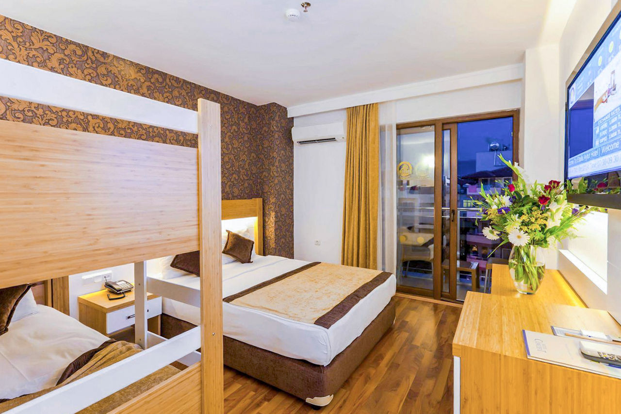 Just a stone's throw from the sun-soaked beach, Eftalia Downtown Hotel boasts a prime location in Alanya's vibrant resort centre, offering easy access to local attractions, shopping, and dining. The hotel features comfortable, well-furnished rooms, perfect for a relaxing stay. Guests can unwind in the lovely outdoor pool area, ideal for lounging or cooling off. With all the amenities you need on-site, whether you're after a casual meal or a refreshing drink, it's all at your fingertips. Eftalia Downtown is the perfect base for couples seeking both beachside relaxation and city excitement.Standard Double or Twin rooms sleep up to 2 adults and 1 child and have bathroom containing a shower, hairdryer, air conditioning, flat screen television, safety deposit box*, free Wi-Fi and balcony. Family rooms sleeping up to 3 adults or 2 adults and 2 children Sole Use rooms are also available.
