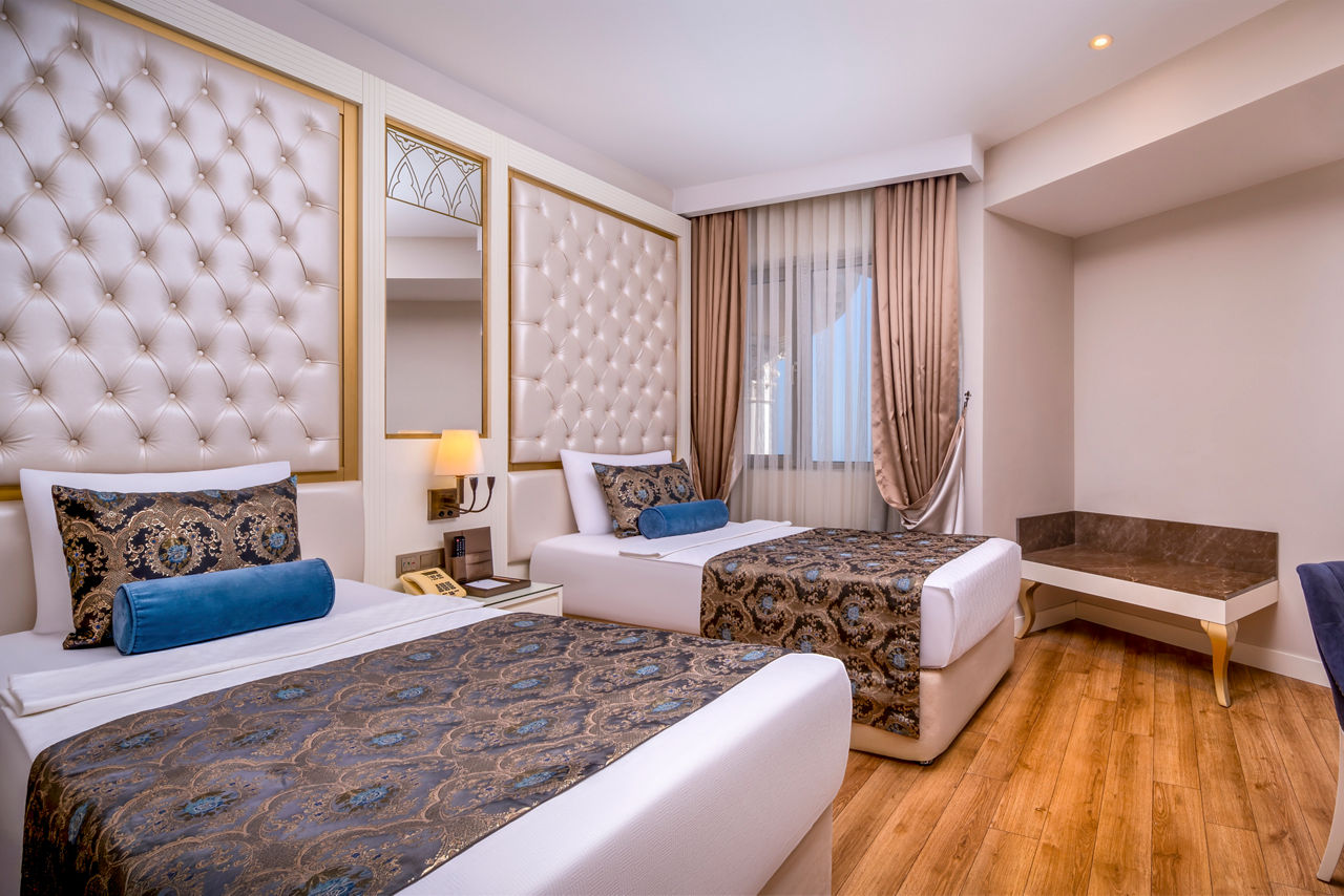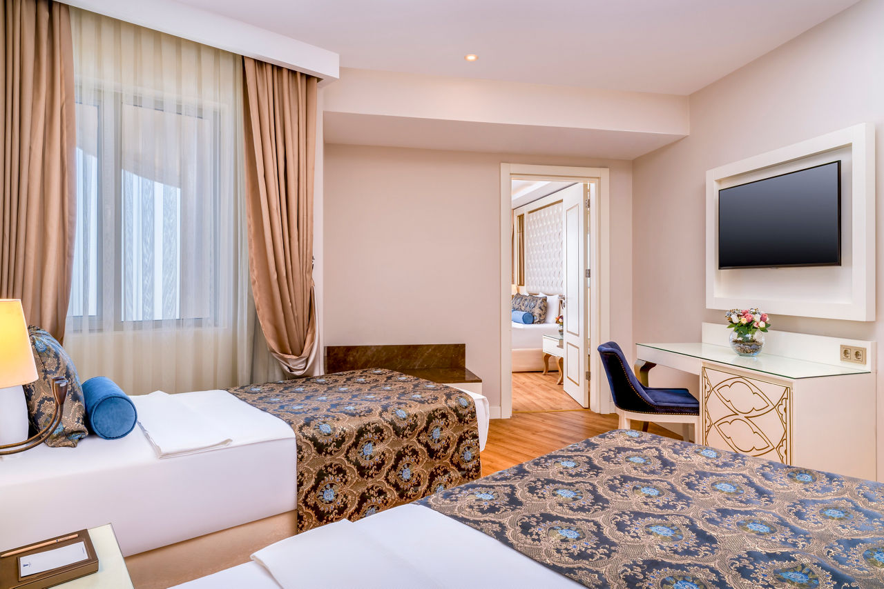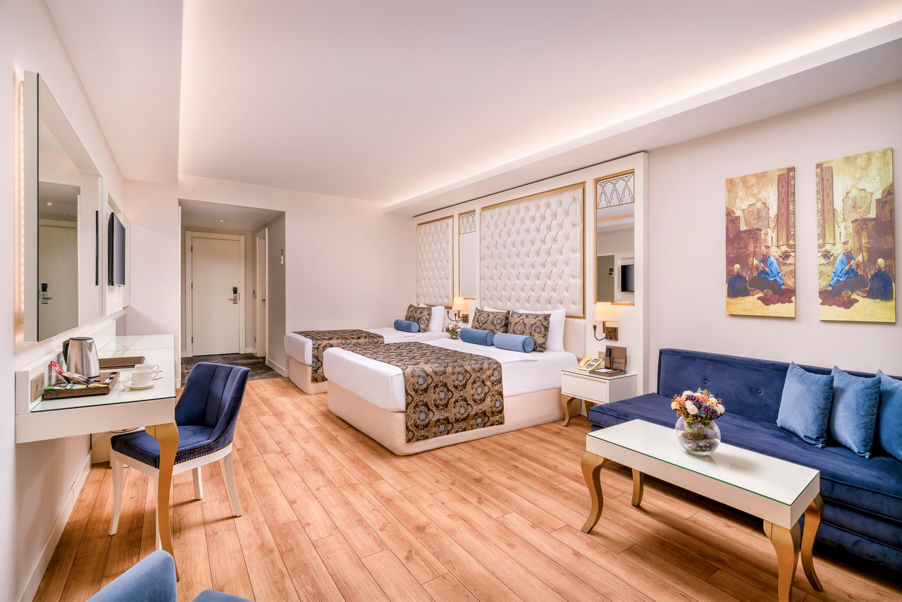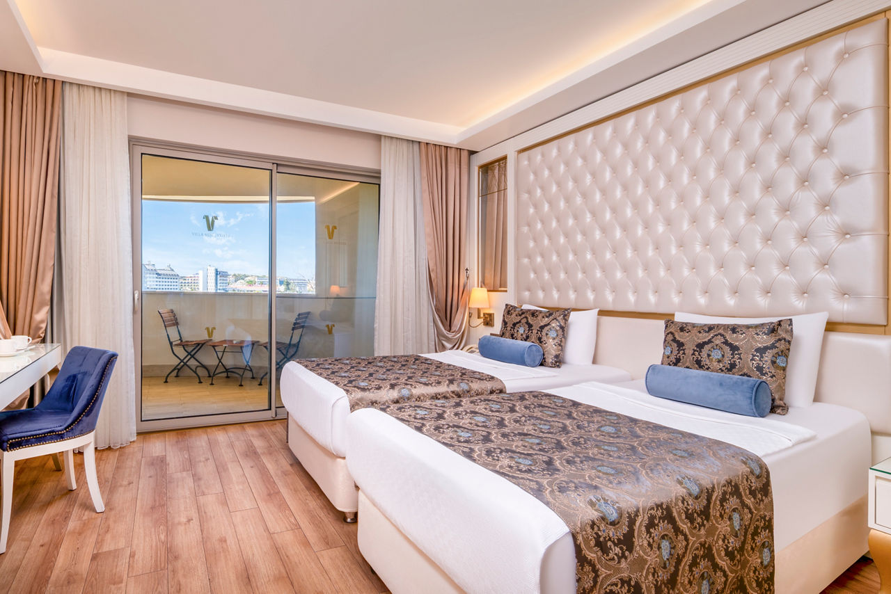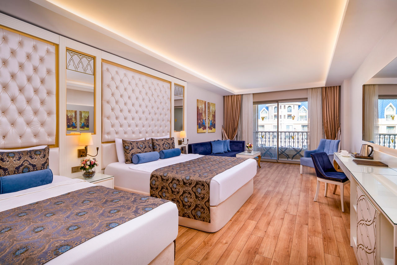 Haydarpasha Palace isn?t just a pretty face! With a thrilling waterpark with slides, a rainbow-coloured splash park, and a serene adults-only pool, there?s fun and relaxation for everyone. Guests can enjoy 24-hour All Inclusive, a choice of eight restaurants and seven bars, plus a private beach to soak up the sun. Indulge in spa treatments, keep the little ones entertained in the children?s clubs, or challenge the family to a game at the bowling alley. With daily entertainment for all ages, there?s always something happening, making every day a new adventure. Whether you?re seeking action-packed fun or a tranquil escape, this hotel truly has it all.Standard rooms have a bathroom containing a shower, air conditioning, flat screen television, tea and coffee making facilities and a balcony.