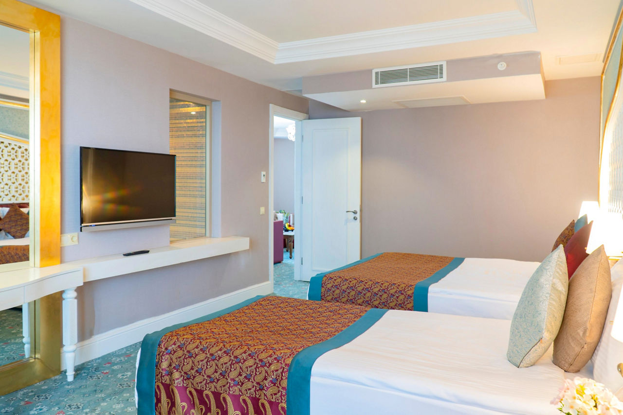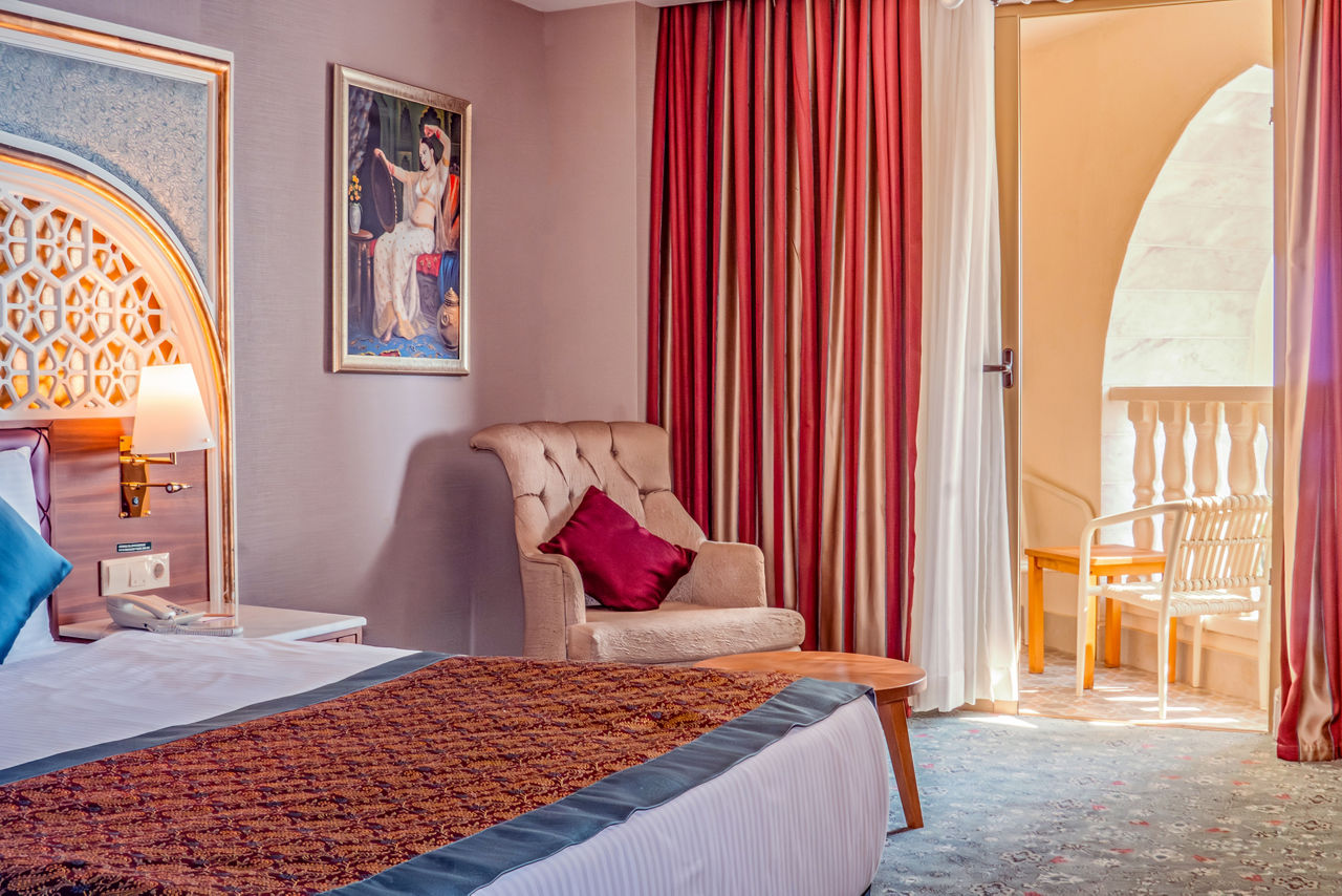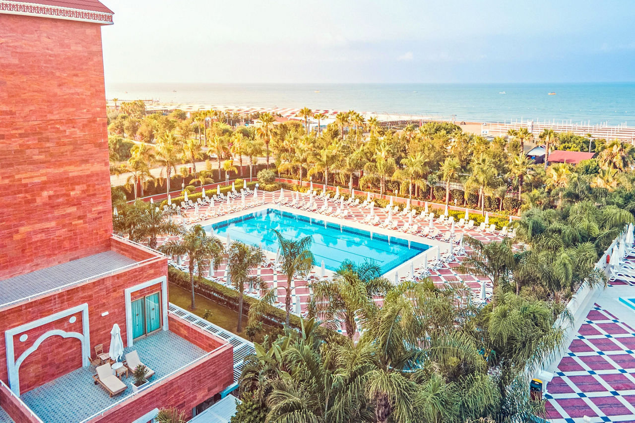 The Royal Taj Mahal offers a refined blend of comfort and elegance. Inspired by the grandeur of the iconic Taj Mahal, the hotel features well-appointed rooms and suites, diverse dining options, and beautiful gardens. For Families, there is a fairground, family-friendly pool area complete with waterslides and activities tailored for children, ensuring a fun-filled, enjoyable experience for all ages. Whether you?re looking to explore the historical sites of Side, or flop in the Turkish sunshine, Royal Taj Mahal has something for everyone.