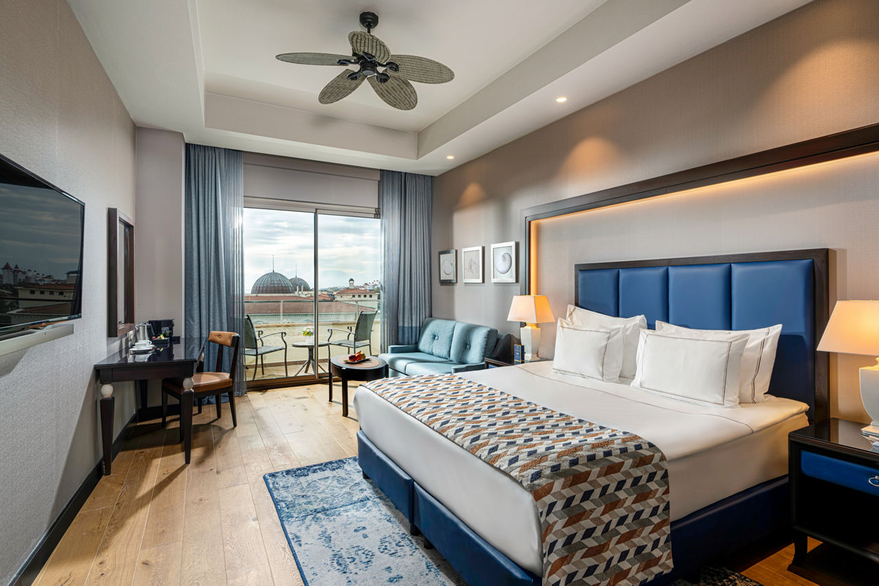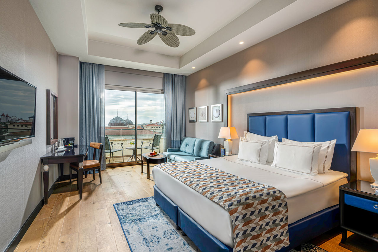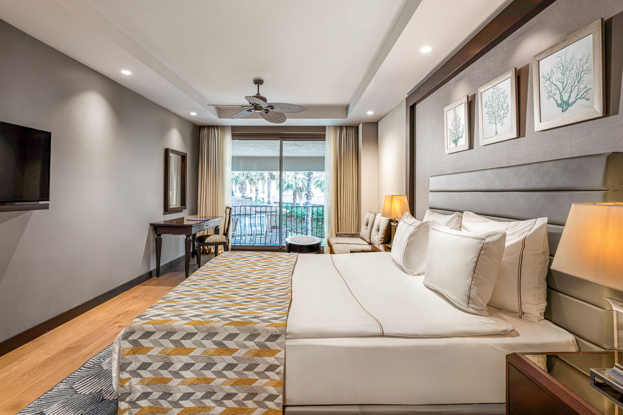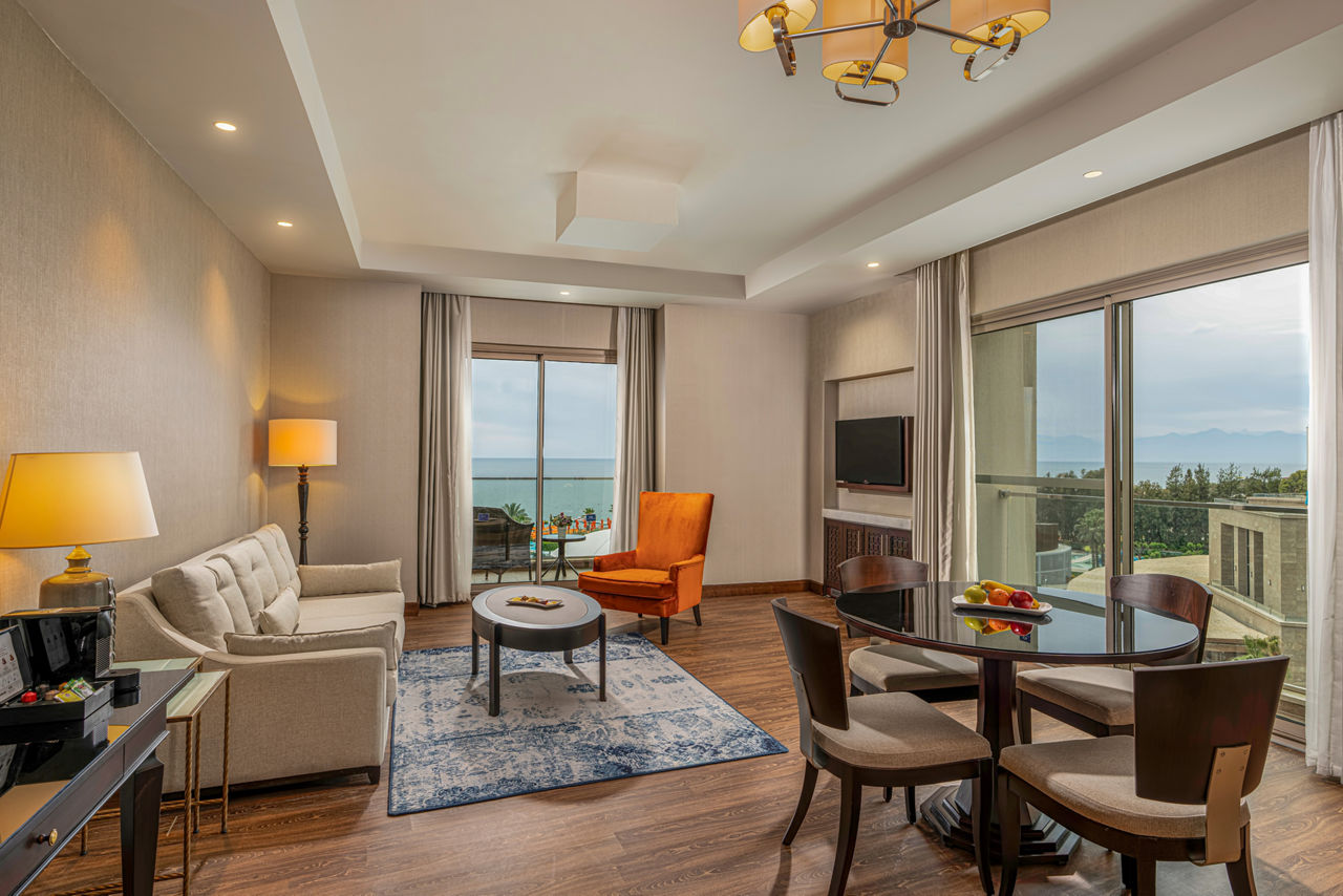 At Kaya Palazzo Golf Resort, you can do it all. Sit back and relax around the huge lagoon-style pool adorned with palm trees or step right onto the sandy beach and swim in the turquoise sea. There?s an aqua park to keep the kids grinning, plus ten international restaurants to tickle everyone?s taste buds. Feeling thirsty? Order your favourite drinks in one of the many bars and consider it quenched. To accommodate all the family, the suites have been designed with space in mind and you?ll be on All Inclusive Plus as standard for ease. A superb spa and fun-packed children?s club also await.Superior rooms with Sea View sleep up to 3 adults and have bathroom containing shower, hairdryer, flat screen television, fridge, tea & coffee making facilities and balcony. Room upgrade options and Sole Use rooms are also available.