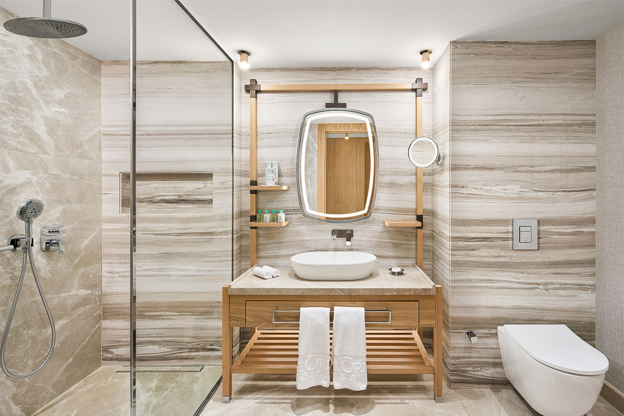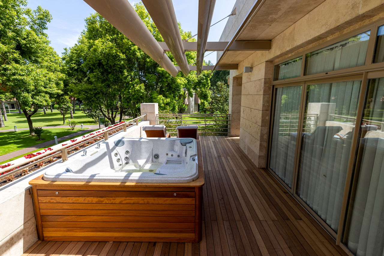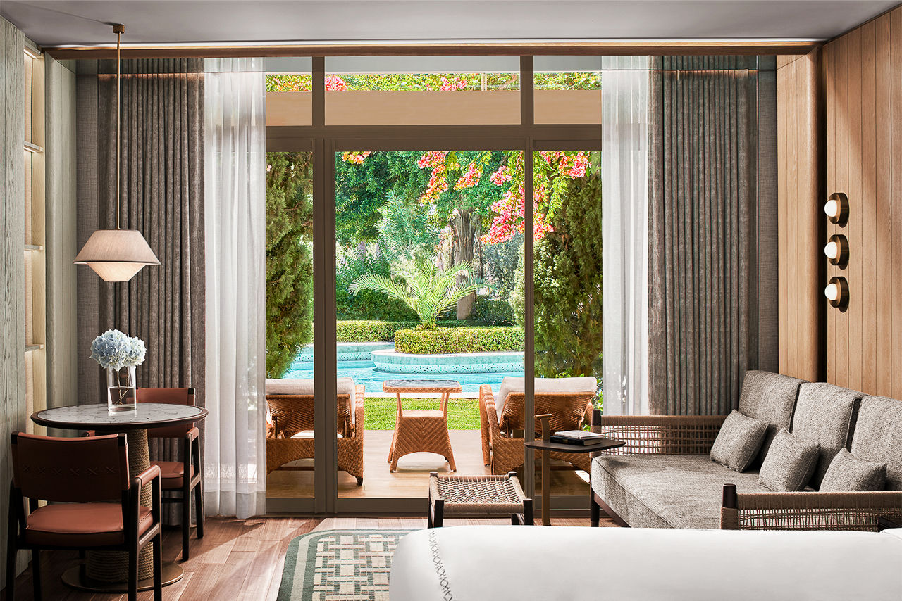 Superior Double or Twin rooms with Land View sleep up to 3 adults and have bathroom containing a whirlpool bath, air conditioning, hairdryer, bathrobe and slippers, flat screen television, free Wi-Fi, safety deposit box, coffee making facilities and balcony or terrace. Superior Double or Twin rooms with Side Sea View, Superior Double or Twin Laguna rooms, Serenity Garden villas and Serenity Pool villas sleeping up to 4 adults are also available.