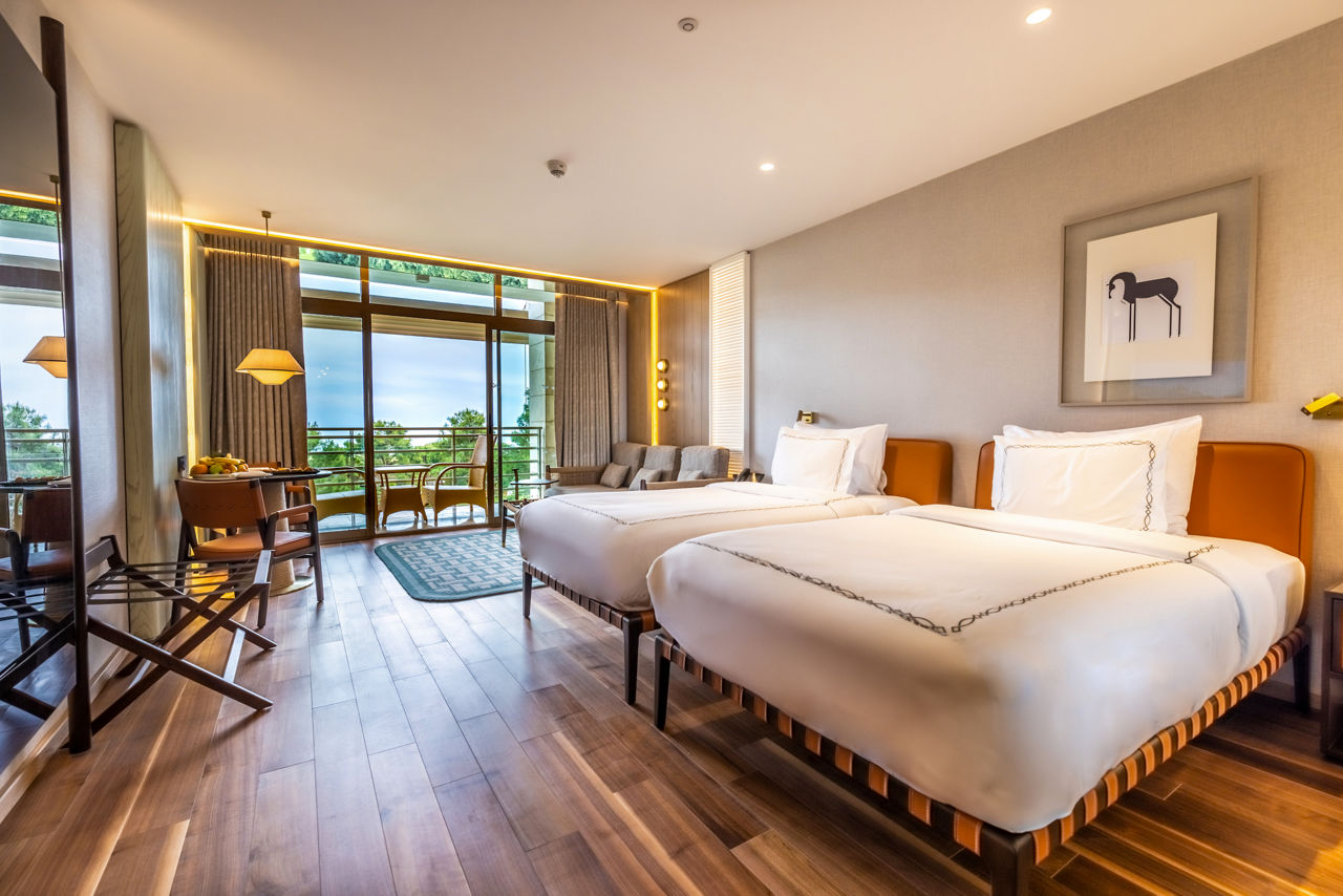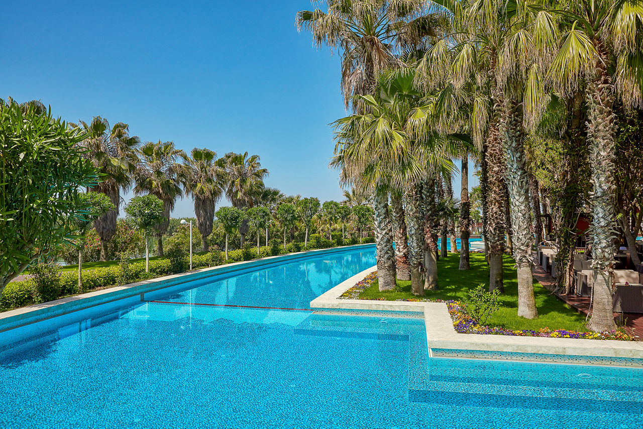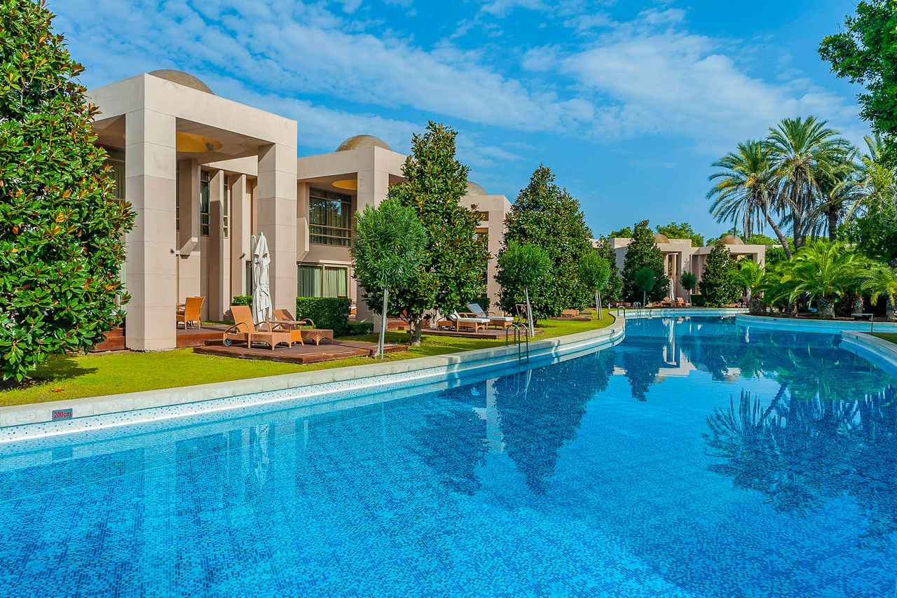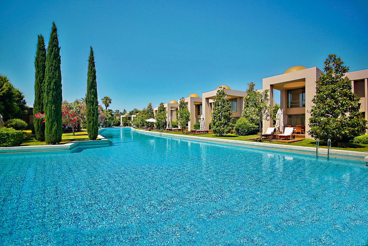 Nestled among pine forests, Gloria Serenity Resort is a Turkish treasure. Bask on the private beach, then delight in dips in the three outdoor pools before sinking into the serene spa's massage menu, soothing saunas and Turkish Bath. Superior rooms, suites and villas just ooze RSuperior Double or Twin rooms with Land View sleep up to 3 adults and have bathroom containing a whirlpool bath, air conditioning, hairdryer, bathrobe and slippers, flat screen television, free Wi-Fi, safety deposit box, coffee making facilities and balcony or terrace. Superior Double or Twin rooms with Side Sea View, Superior Double or Twin Laguna rooms, Serenity Garden villas and Serenity Pool villas sleeping up to 4 adults are also available.