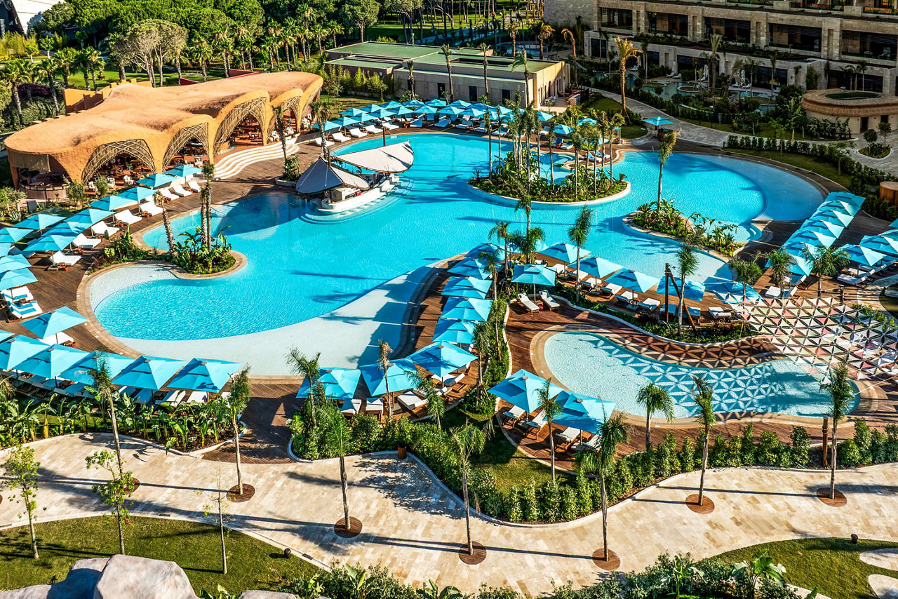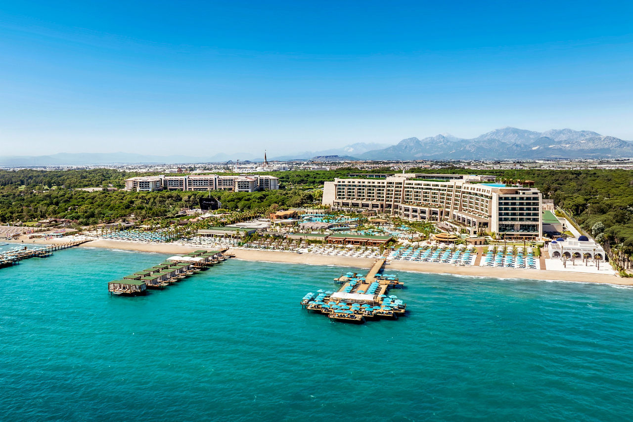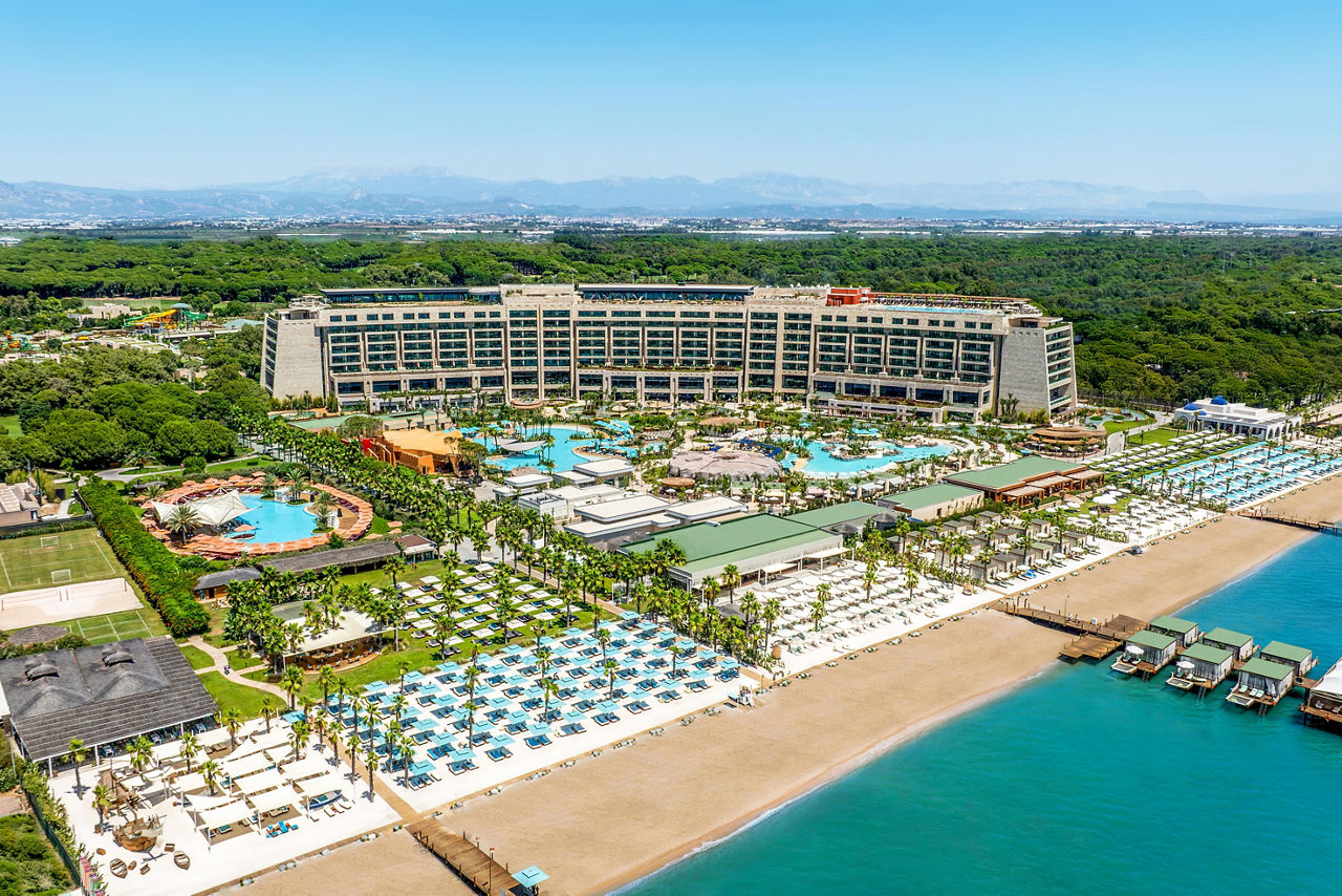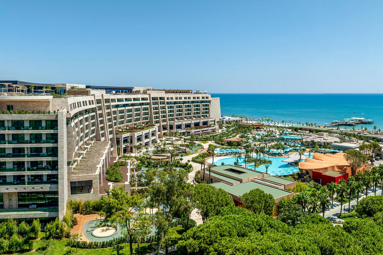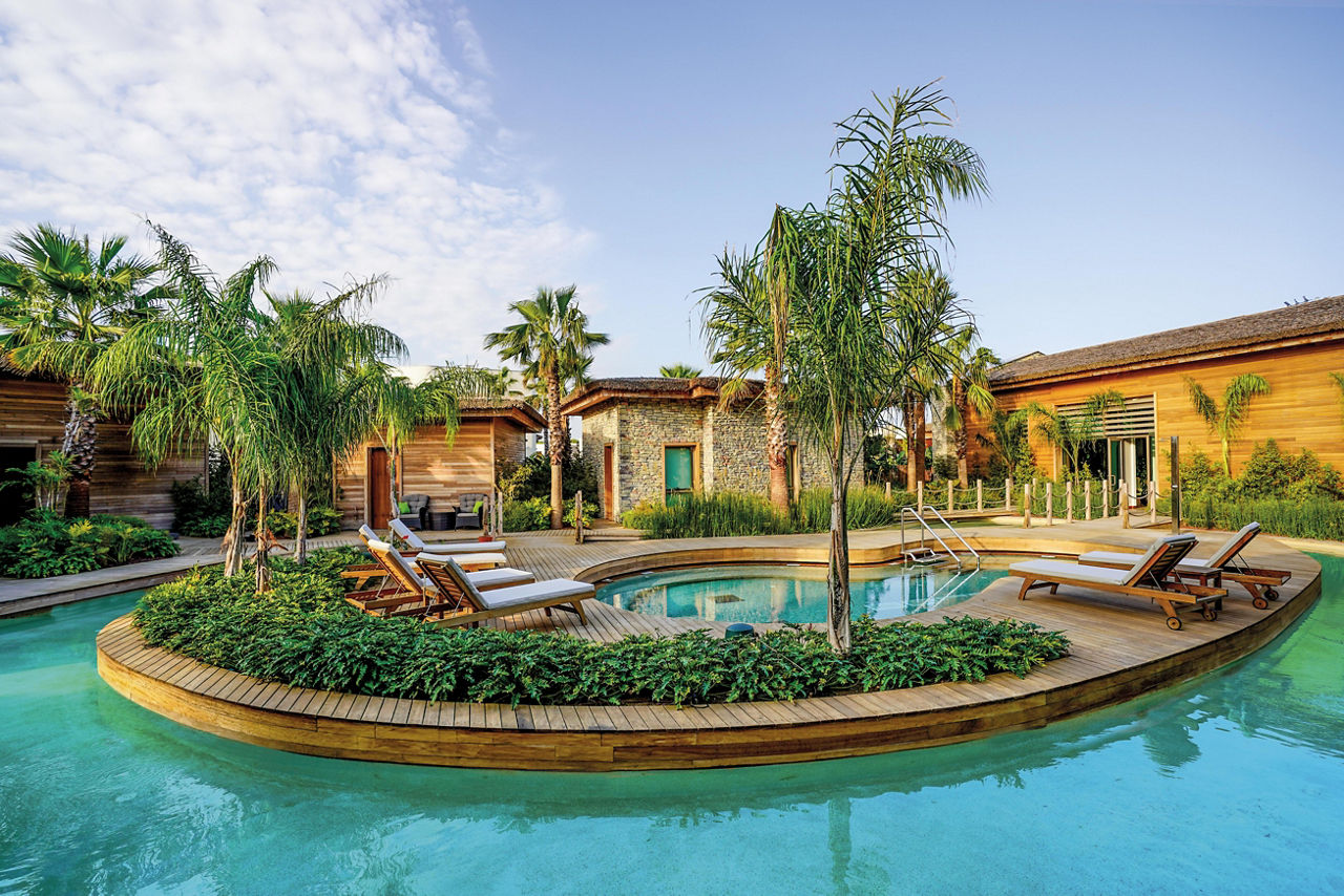 A brand-new concept from the Regnum Carya owners, Regnum The Crown offers an elevated experience of sheer elegance. Let the ultra-chic gold-and-beige design dazzle you at check-in as you're given fizz and chocolate-dipped strawberries, then unlock your suite or villa. Each features a full dressing room, Bulgari toiletries and coffee machine. From spells in the hammam to sessions in the fitness club and live entertainment you can truly relish in luxury. You'll be in awe of the lagoon-style pools, children's club and culinary concepts such as tapas and wine and the Turkish coffeehouse. Why not hire bikes or tee off at Carya Golf Club?