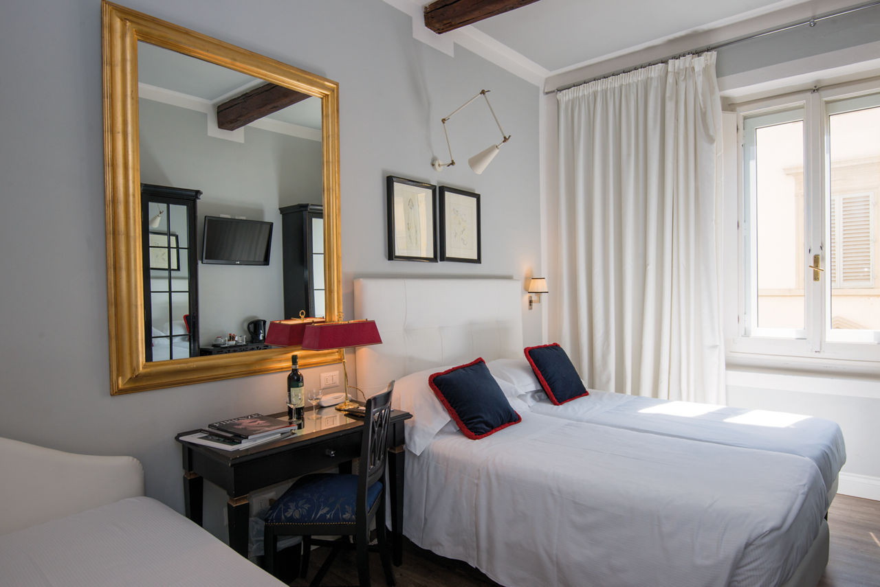 This hotel is located in central Florence, within easy reach of its famous sights and surrounded by the extraordinary beauty of its buildings and monuments. Charming in style, this cosy hotel is decorated with unique art and antiques and gives you the feel of being in your own Florentine home. Valuable antiques and art treasures mix well with a contemporary twist and rooms are carefully designed with special touches that make each room a perfect retreat from the bustle of the city. After a long day why not enjoy the complimentary tea and coffee served in the library before enjoying the local cuisine. A unique atmosphere and a warm welcome make it a great place for a short break in this Renaissance city.Double standard rooms sleep up to 2 adults and have bathroom with bath or shower, hairdryer, satellite TV, mini-bar* and safe*.