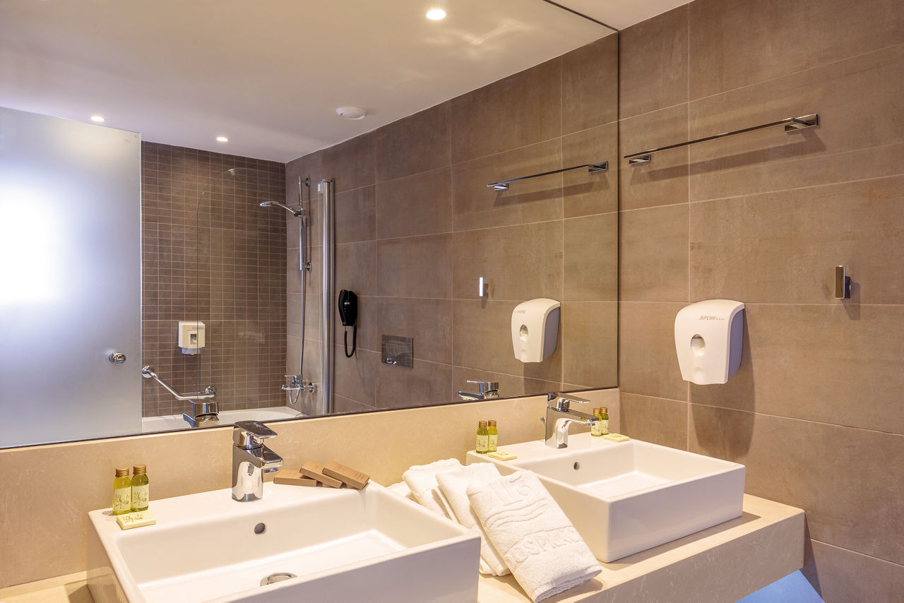 Double rooms sleep up to 3 adults and have a full bathroom, hairdryer, air conditioning, satellite TV and balcony or terrace. Sea View rooms, Family rooms sleeping up to 3 adults and 1 child and Superior Family rooms are also available.