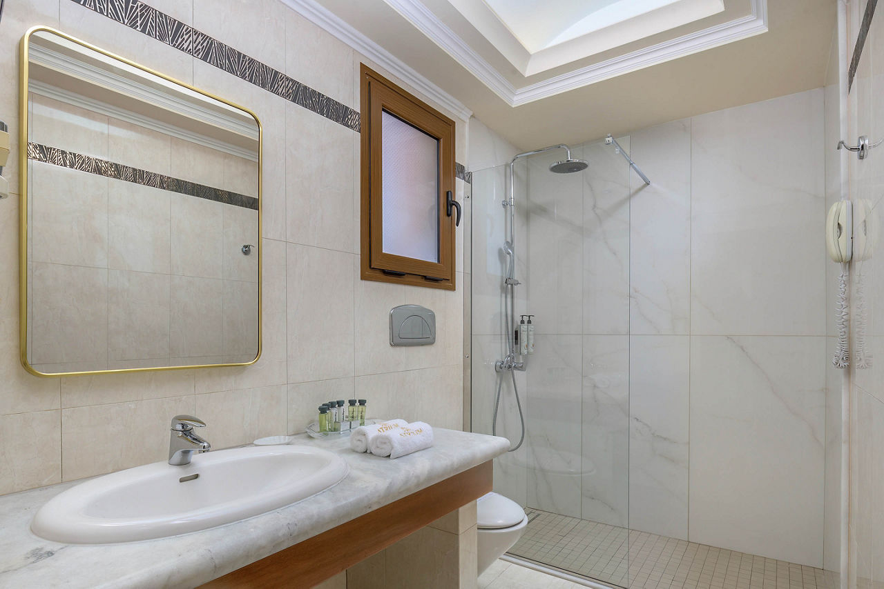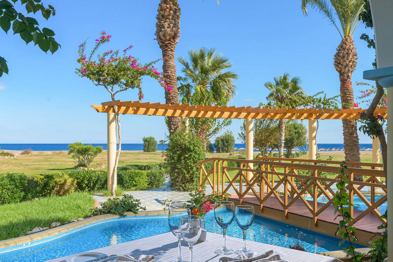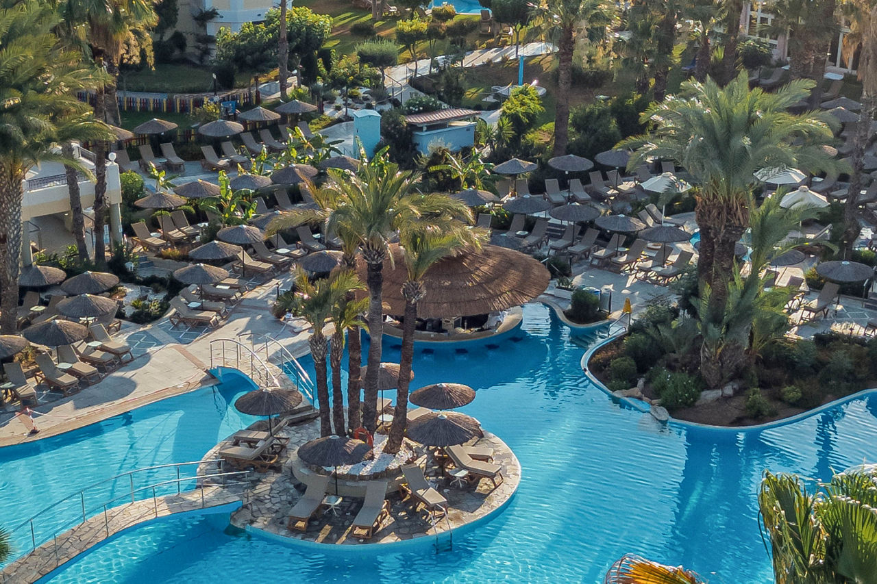 Where a combined ensemble of Greek and Italianate architecture meets the gentle ripples of three, palm-lined pools, a captivating complex waits to welcome you. As its name suggests, this palatial property provides villa accommodation, as well as gorgeous rooms and suites, all while the spa is its crowning standout. Prepare to be charmed by the Roman pillars, range of board bases and fabulous, family-friendly amenities too. Allow your toes to sink into the mix of sand and pebbles just a seafront stroll away. Then, delight your senses upon return with the smorgasbord of tempting buffet and ? la carte dishes, why not opt for All Inclusive Plus where dining is a delight across the quintet of restaurants?Double rooms sleep up to 3 adults or 2 adults and 1 child and have air-conditioning, hairdryer, satellite TV, mini-bar*, tea and coffee making facilities, full bathroom, bathrobes and slippers and balcony or terrace. Disabled rooms are available on request. Side sea view and Sea view rooms, Junior suites with whirlpool bath and Family suites with whirlpool bath and separate lounge are also available. Deluxe villas with pool sleeping up to 3 adults, Executive villas sleeping up to 4 adults and Presidential villas sleeping up to 5 adults with two bedrooms and two bathrooms are also available. All villas have private heated pools and a terrace, and include free access to the Thalasso Spa Centre and a separate breakfast area with à la carte specialities
