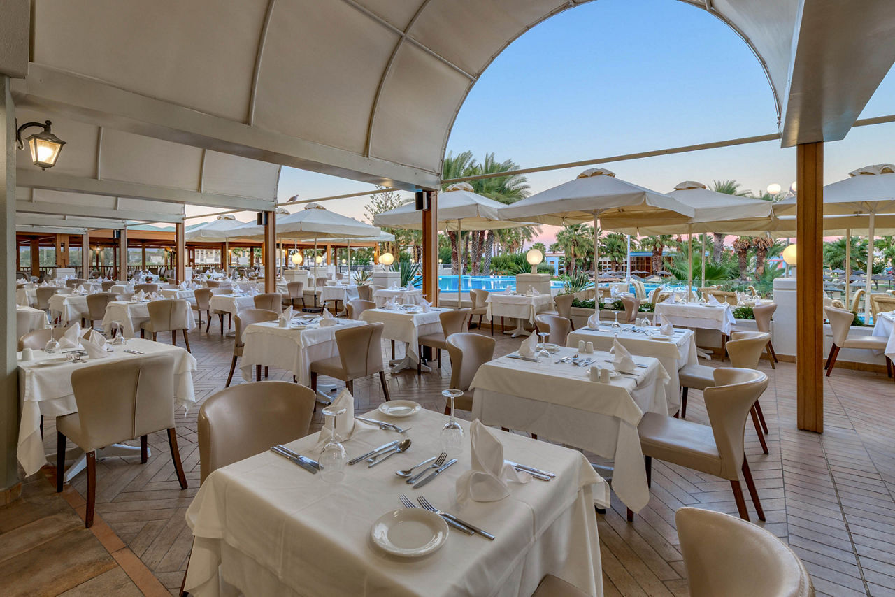 Main buffet restaurant with terrace area; Pool restaurant: Two pool bars; Main bar with themed nights; Beachfront bar; pizzeria. Guests on all inclusive will receive a 30% discount on the a la carte restaurants. All Inclusive guests also receive the mini bar stocked with soft drinks, water and beer on arrival.Entertainment