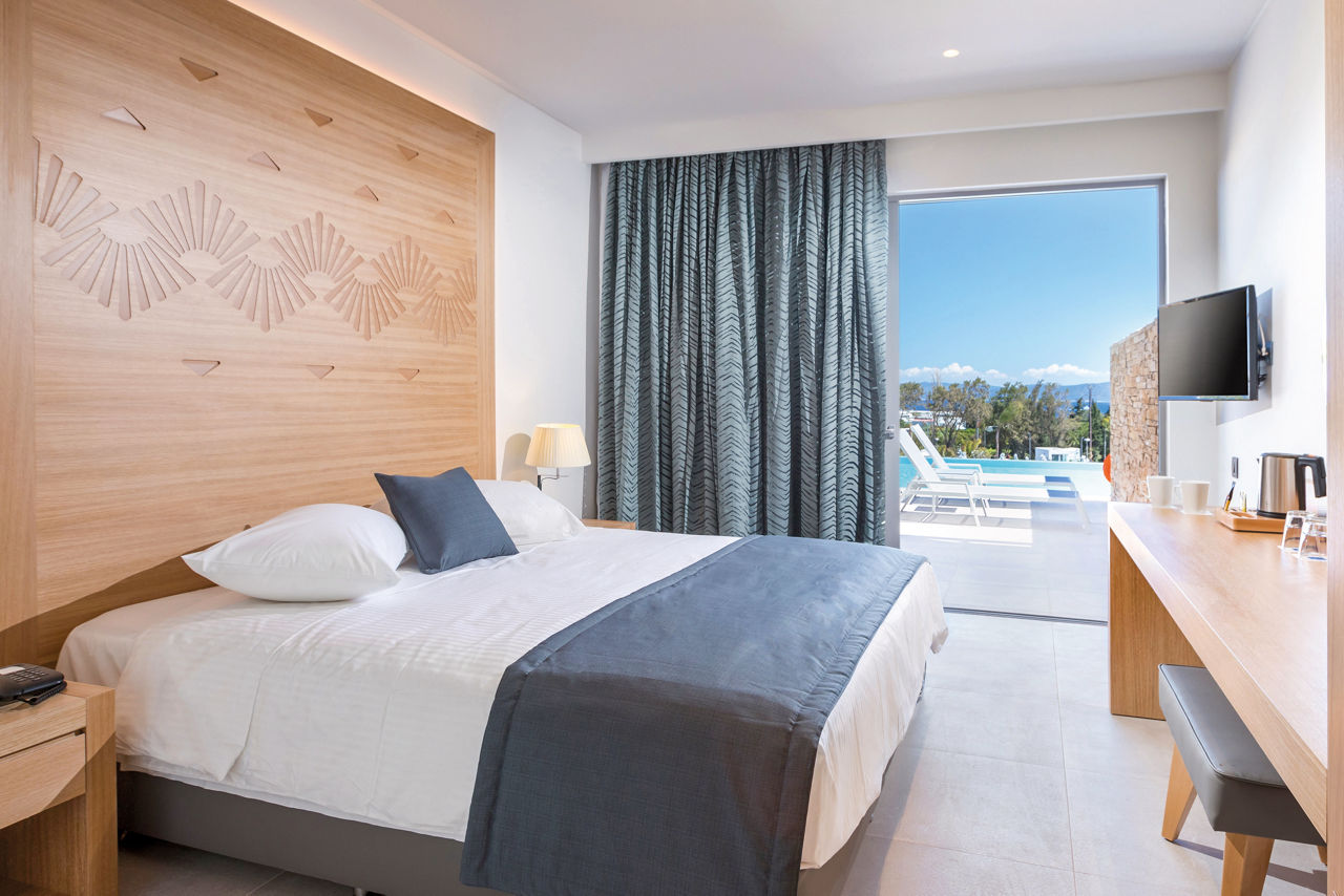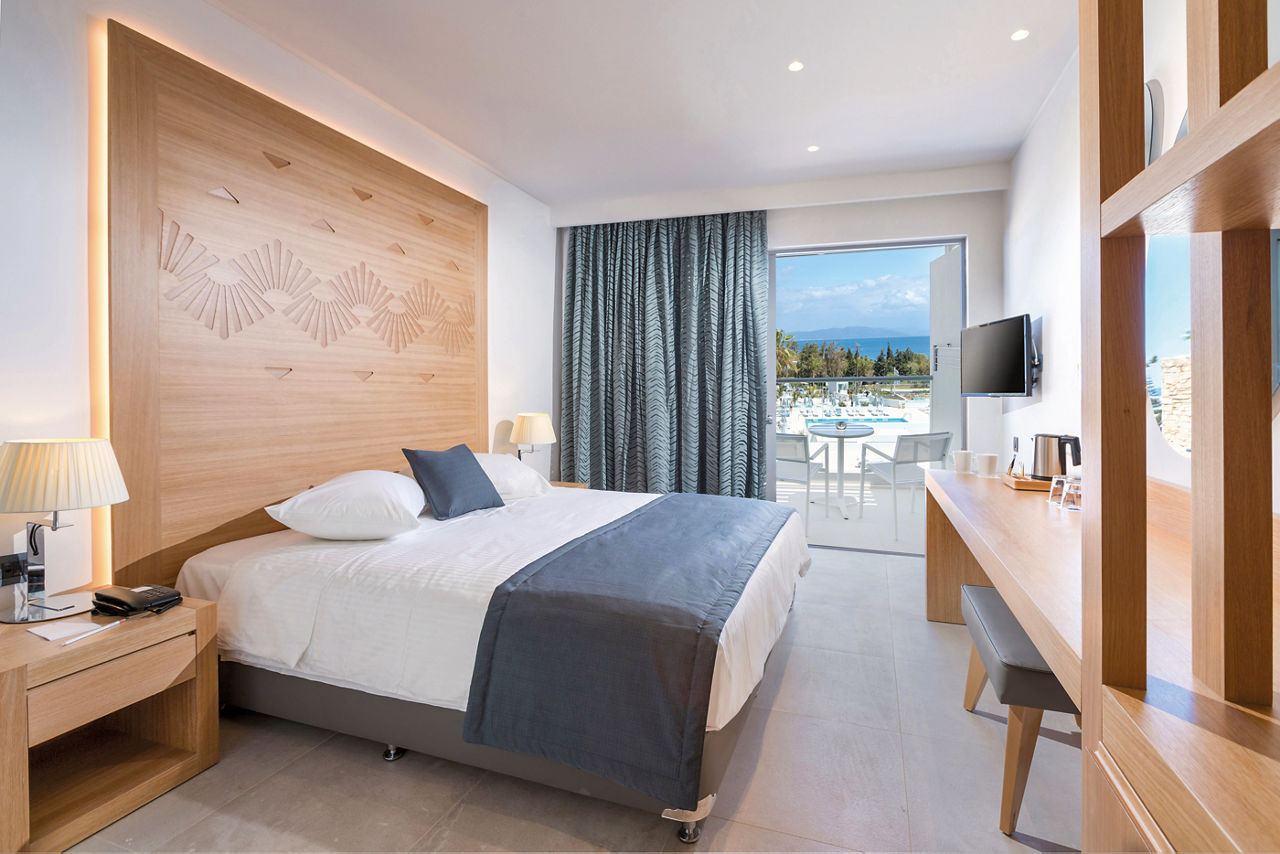 A spacious and modern Adults Only hotel, Blue Ocean Lagoon sets a serene and relaxing atmosphere close to the peaceful coastline of Psalidi. You?ll love unwinding by the expansive pool, lined with sunbeds and palm trees. Inside, the sleek interiors make a welcome retreat when you fancy a break from the sun. The All Inclusive offer at Blue Lagoon Ocean means you can make the most of meals at the two buffet restaurants. Plus, there?s even more to discover beyond the hotel. You could make the 3km journey to the centre of Psalidi or travel slightly further to the island?s cultural capital, Kos Town, which is within easy reach.Double room with Garden View sleep up to 2 adults and have bathroom containing a bath or a shower, air conditioning, hair dryer, bathrobe and slippers, flat screen television, and a balcony or terrace. Room upgrade options are also available.