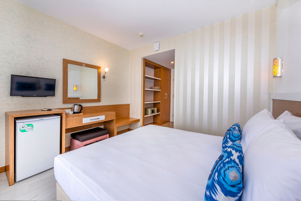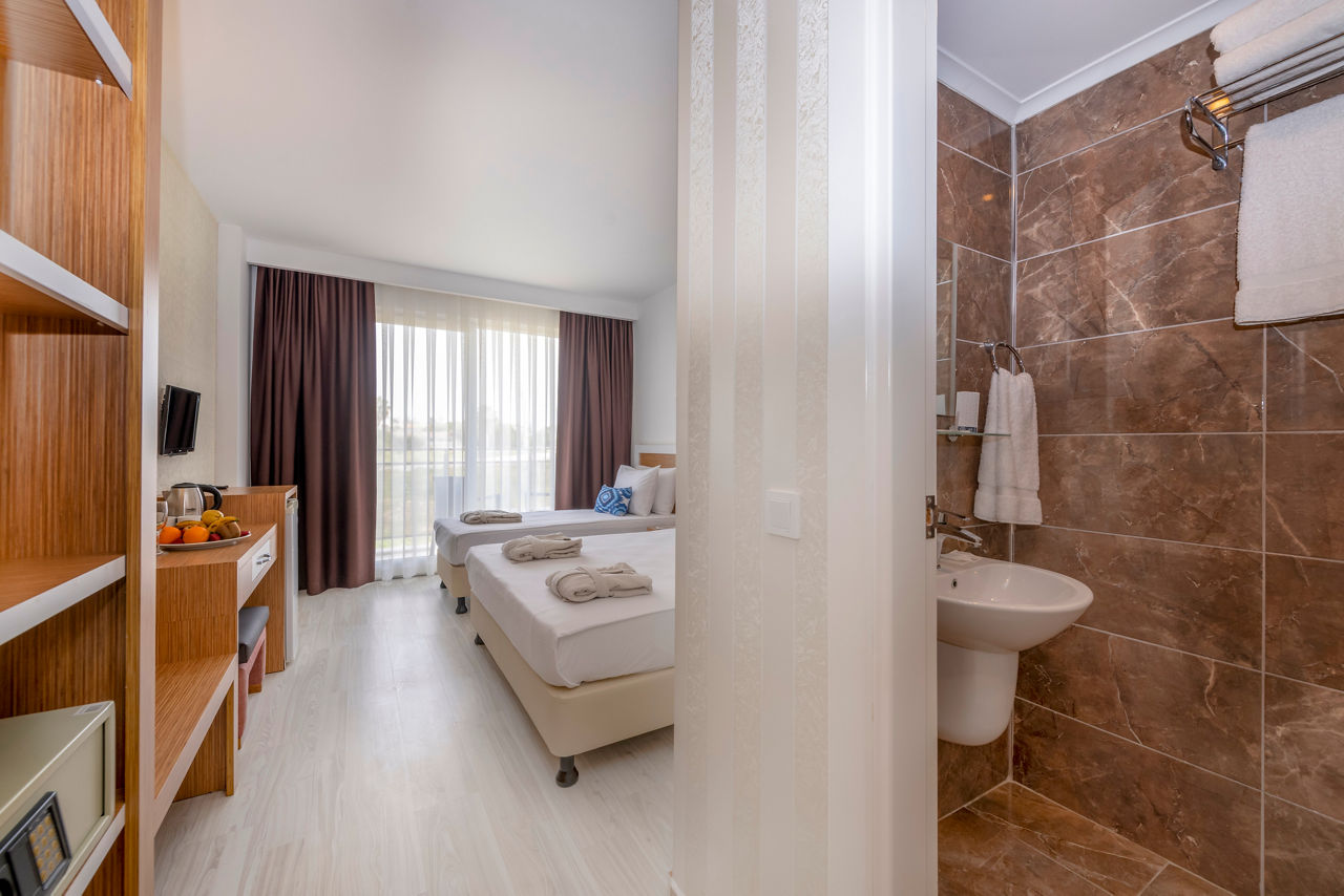 A Hotel Side is a simple and friendly complex offering a relaxed atmosphere, perfect for couples or families in search of a budget friendly stay near the historic resort of Side. The compact swimming pool is joined by a handy pool bar and restaurant serving snacks throughout the day so you will have everything in one place, ensuring all you have to worry about is kicking back and enjoying the warm sun.Standard rooms sleep 2 adults and have a bathroom containing a shower, air conditioning, hairdryer, safety deposit box, flat screen television, coffee making facilities, kettle, mini bar* and balcony. Room upgrade options are also available.