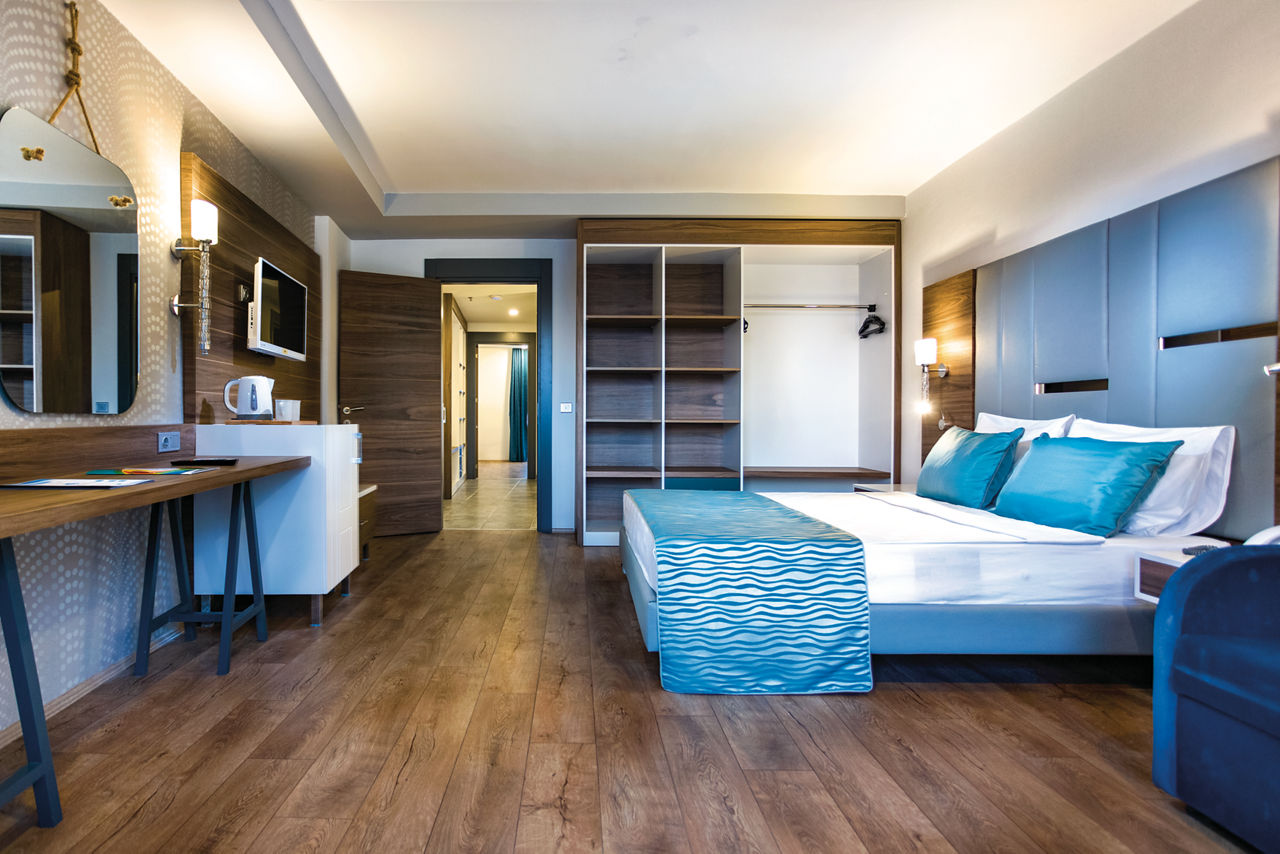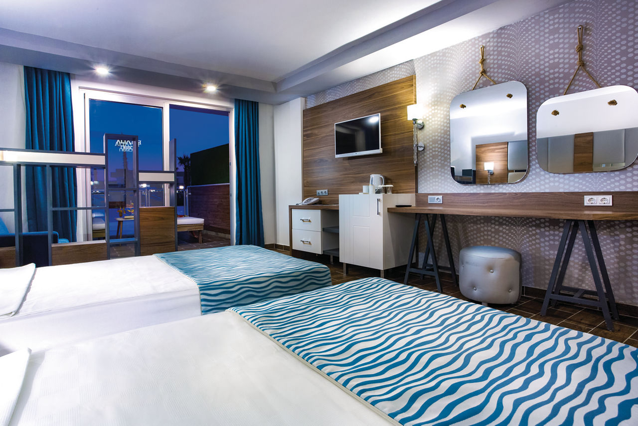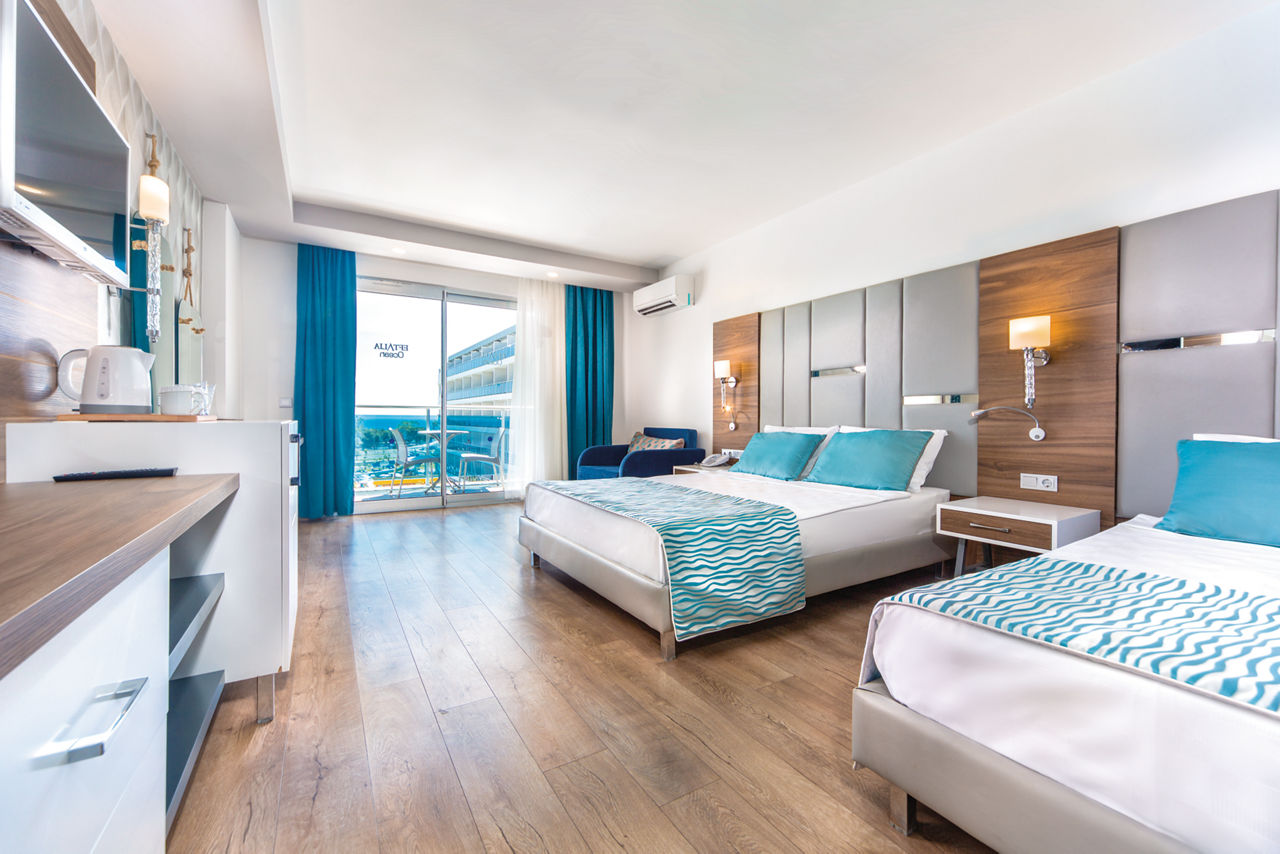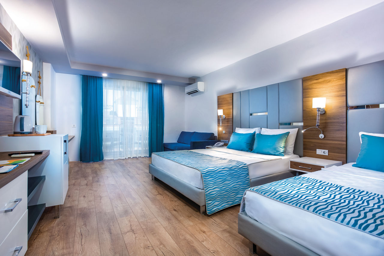 Enjoy a fantastic family getaway at the stunning Eftalia Ocean ResortStandard Double or Twin rooms sleep up to 3 adults and have air conditioning, hairdryer, flat screen television, safety deposit box, kettle and balcony. Eco Standard Double or Twin rooms, Large Family rooms, Family rooms with Two Bedrooms, Swim Up rooms with Two Bedrooms, Swim Up rooms with Three Bedrooms and Sole Use rooms are also available.