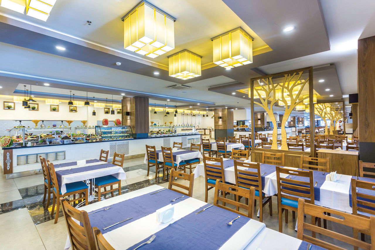 3 restaurants including 1 buffet restaurant and 2 à la carte restaurants. Burgerland. Patisserie. 6 bars including a beach bar, disco bar, 2 lobby bars, pool bar and snack bar.Entertainment