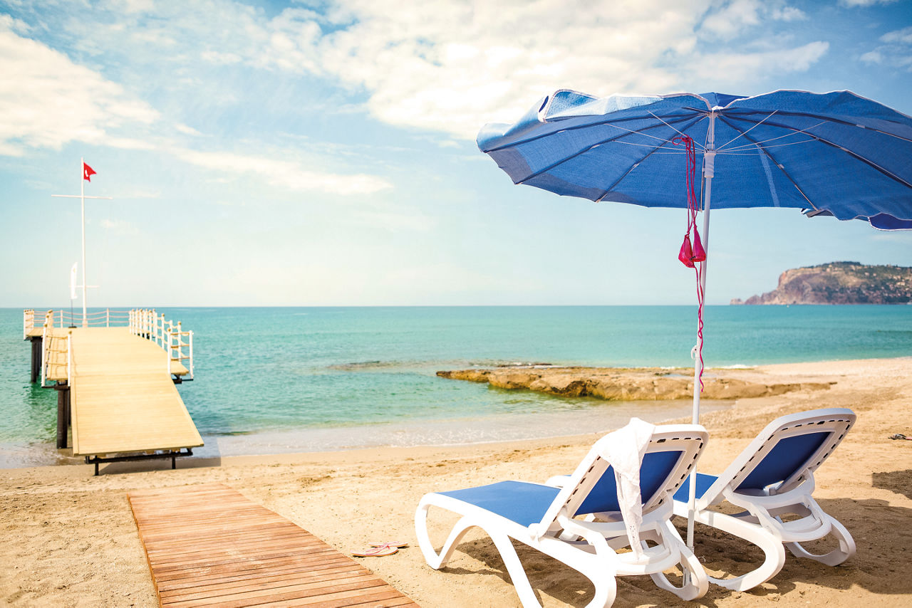 Beachfront (pebble beach). 600m from the nearest shops, bars and restaurants. 4km from Alanya resort centre.Complete Booking