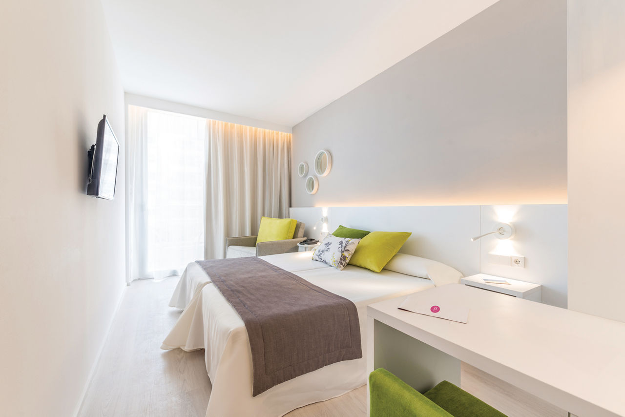 Found close to the beach, JS Sol de Alcudia is a modern hotel with a fantastic pool scene. Flanked by sun loungers, the pool and its terrace offer a great place to relax and take in the Majorcan sunshine. Elsewhere, the buffet restaurant comes complete with alfresco dining and serves up a range of regional, national and international dishes. Evenings can be spent at 12 to 12 Lounge where you can try-out some of the cocktails on offer. When it?s time to hit the sheets you?ll be welcomed by a spacious and modern room, each having a balcony to enjoy.Twin rooms sleep up to 3 adults or 2 adults and 1 child and have bathroom containing a shower, air conditioning, flat screen television and balcony or terrace. Twin rooms for Sole Use and Promotional Twin rooms are also available.