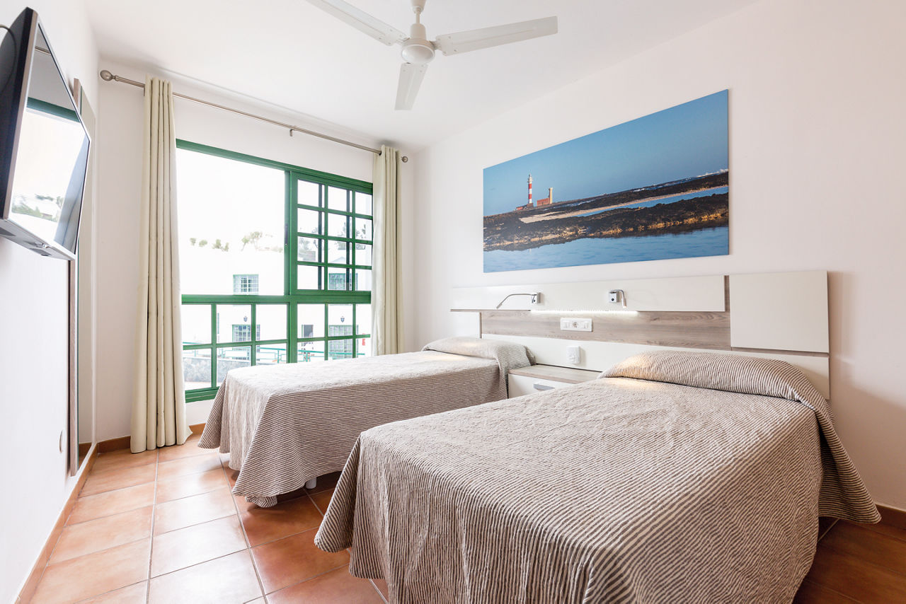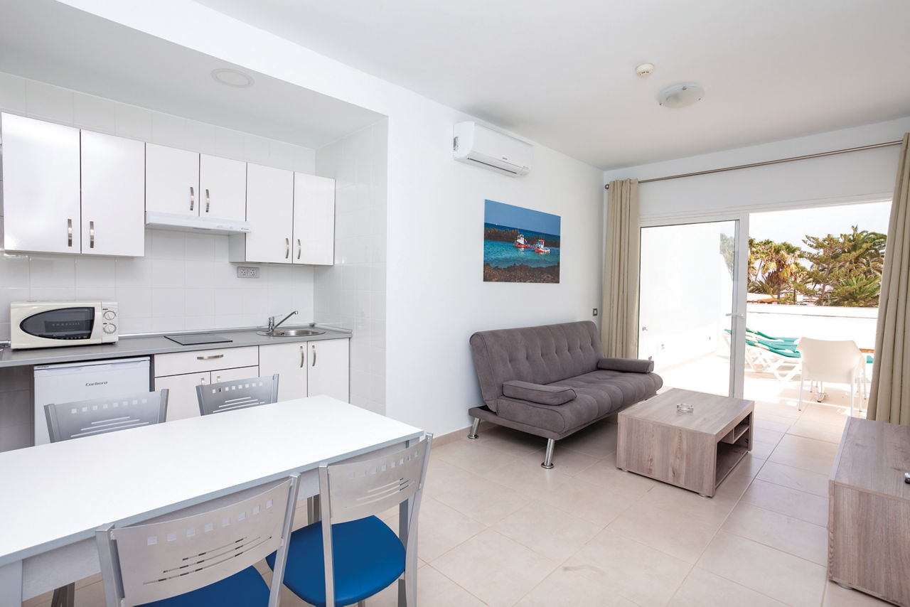 Those who want the beautiful Corralejo beach right on their doorstep will love Tao Caleta Playa; a relaxed complex with stunning views of the sea. These spacious apartments are well-equipped, making them ideal for both friends and families looking for an easy going stay in a central location. Spend your days relaxing by the quiet pool, on the beach or take the short walk into the resort centre to find some delicious local cuisine and entertainment.One bedroom apartments sleep up to 3 adults and have bathroom containing a shower, air conditioning, flat screen television, coffee making facilities, fridge, microwave, toaster and balcony or terrace.