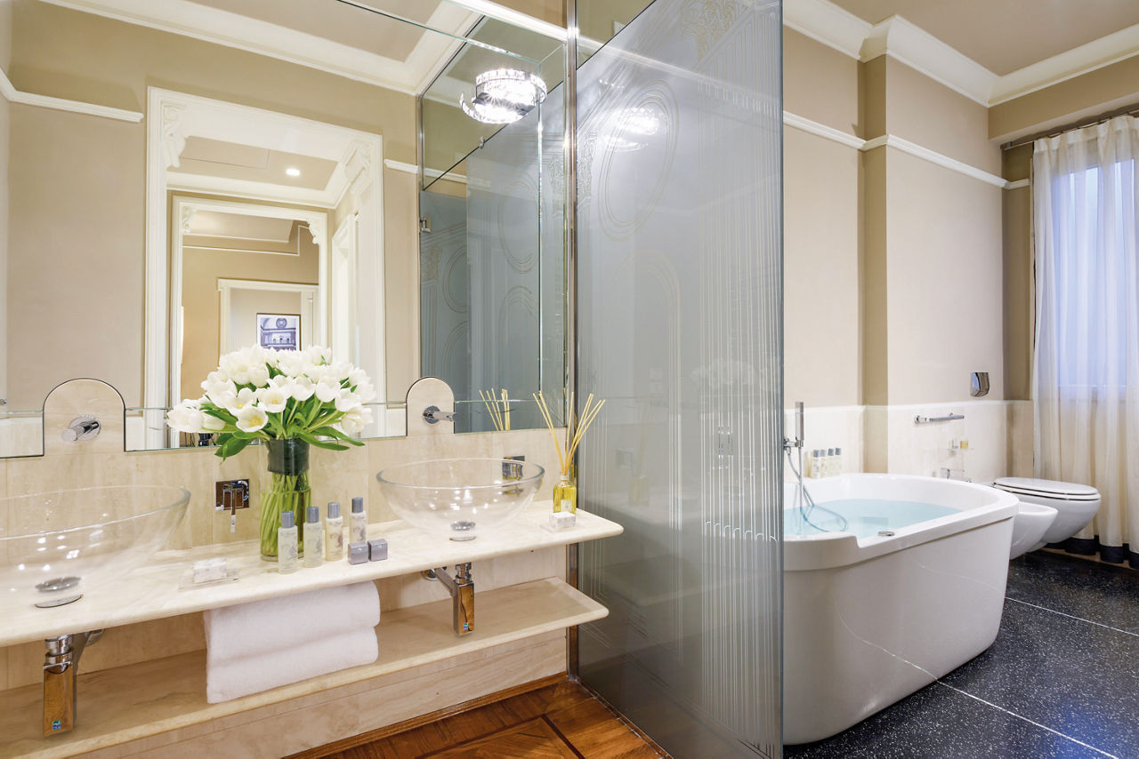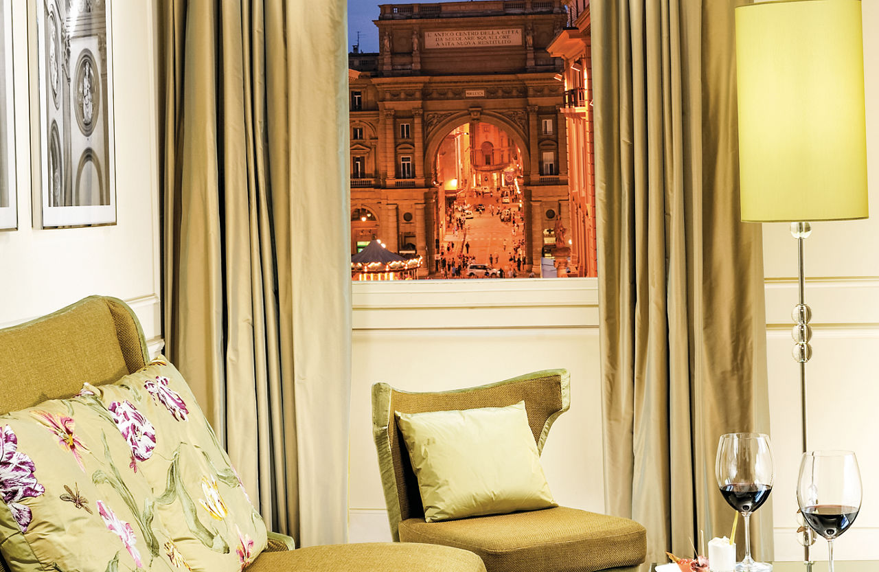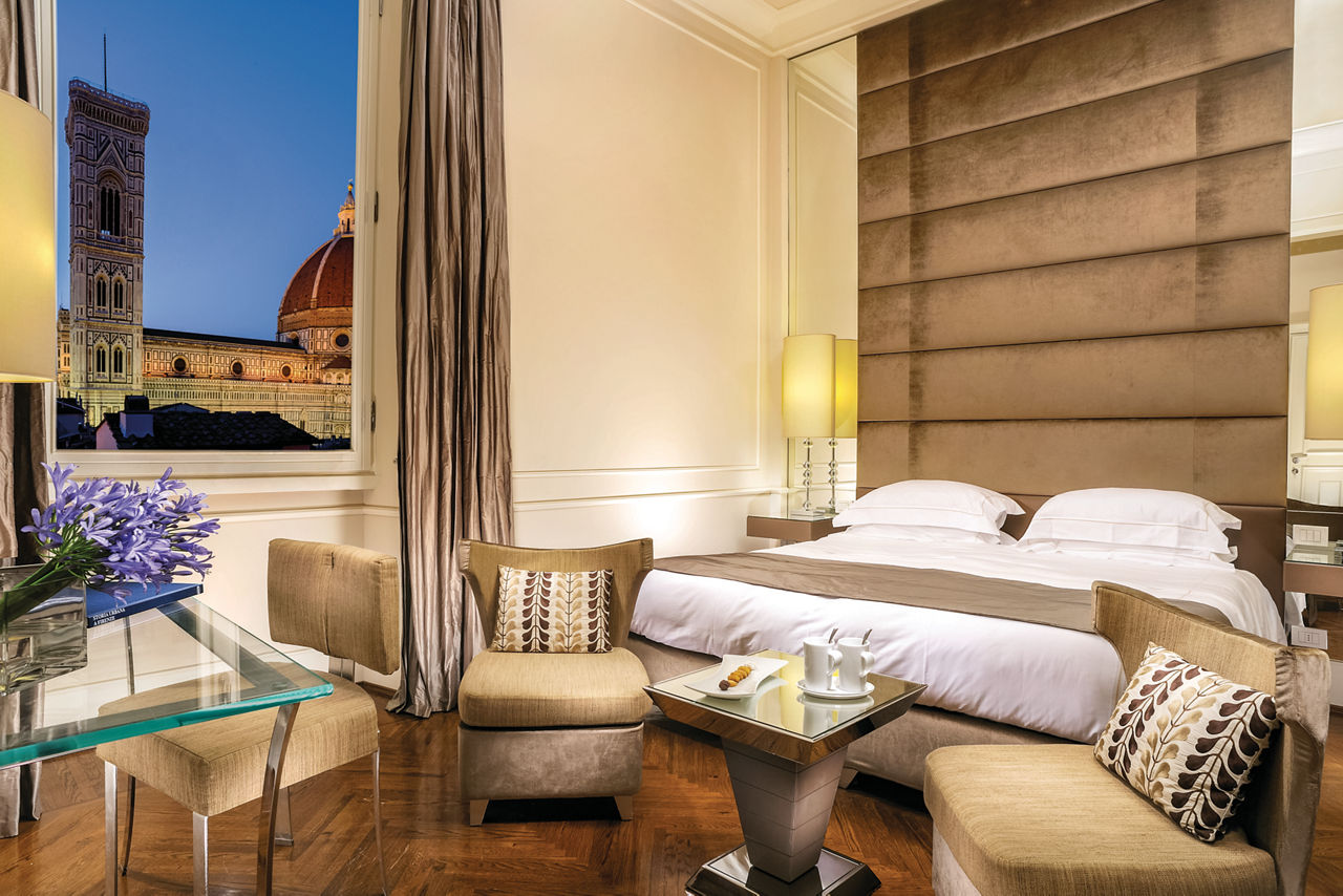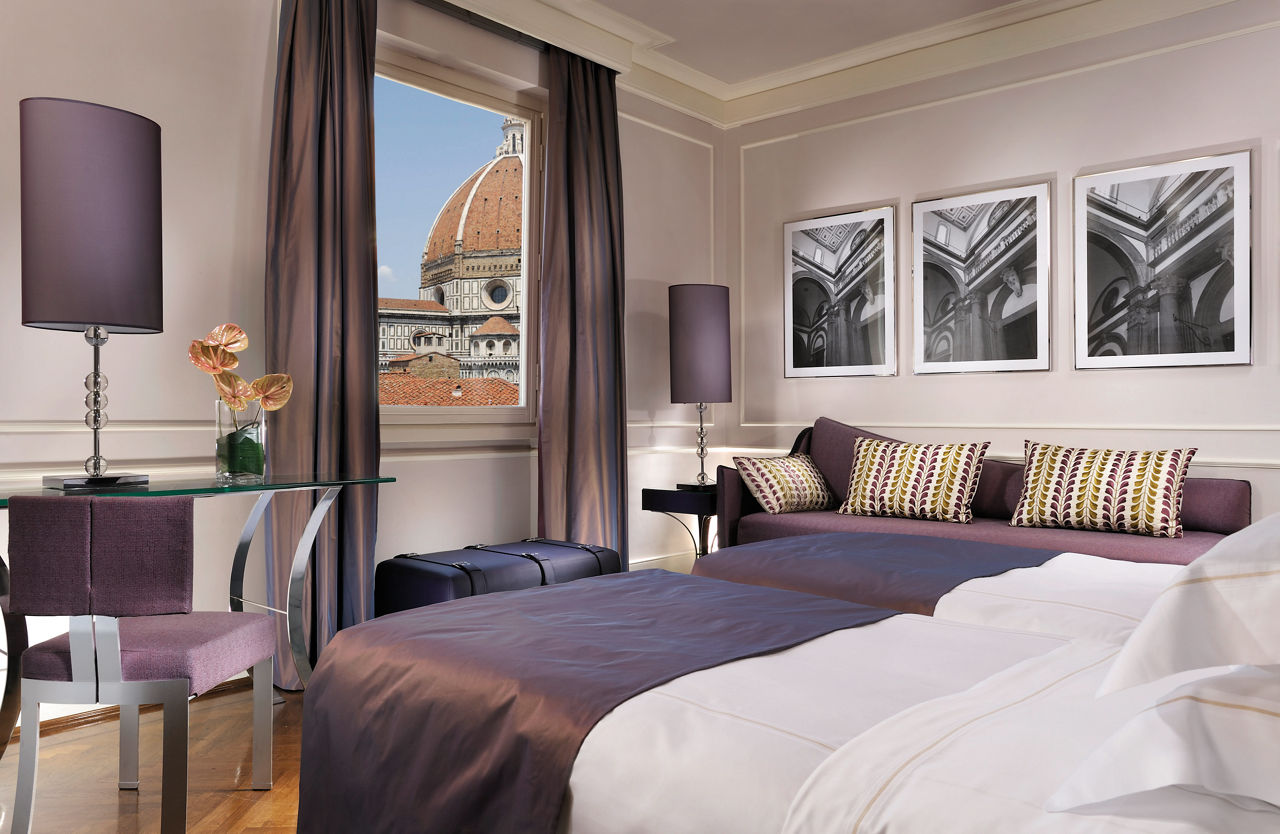 The Brunelleschi Hotel, nestled in a charming square in the heart of Florence, is just steps from the Duomo, Palazzo della Signoria, and the Uffizi Gallery. Surrounded by top shopping streets and iconic museums, the hotel boasts a 6th-century Byzantine tower and a renovated medieval church. Its private museum showcases artifacts discovered during restoration. With a blend of elegant contemporary and classic styles, the hotel is an ideal base for exploring Florence. Dining highlights include the Michelin-starred Santa Elisabetta Restaurant and the casual Osteria Pagliazza, offering al fresco dining in summer. The Brunelleschi Hotel provides a truly unique setting for an unforgettable Florentine getaway.Classic Executive rooms sleep up to 2 adults and have bathroom with shower or bath, hairdryer, satellite TV, tea and coffee making facilities, safe* and mini-bar*. Junior Suite with free spa access and Classic Executive rooms for Sole Use are also available.