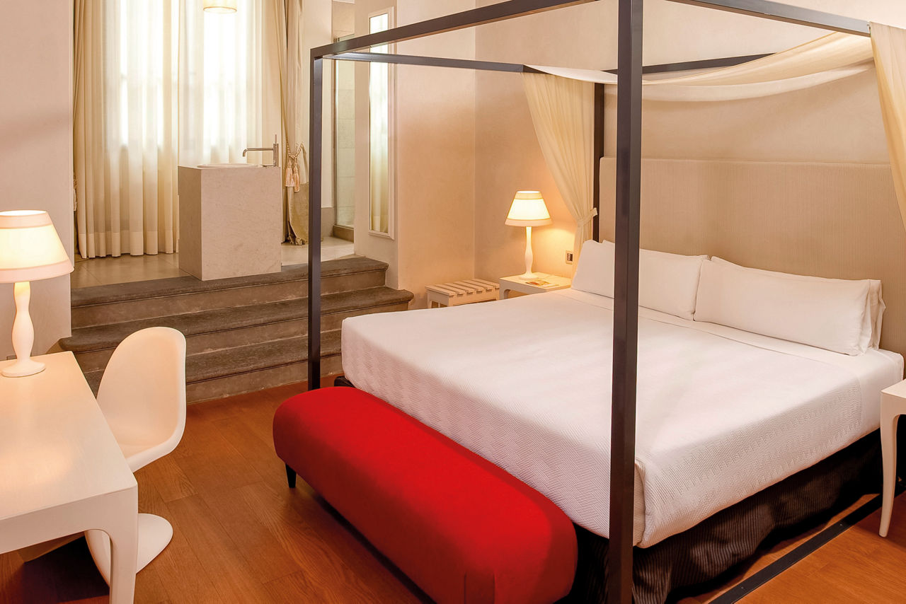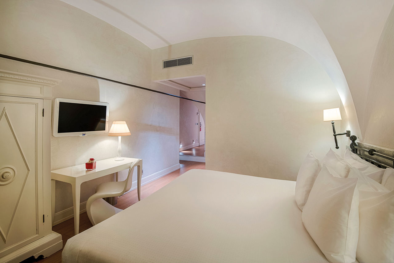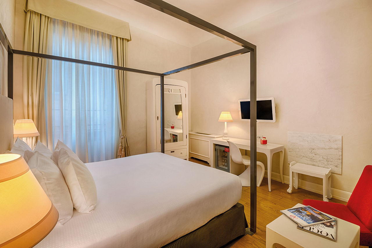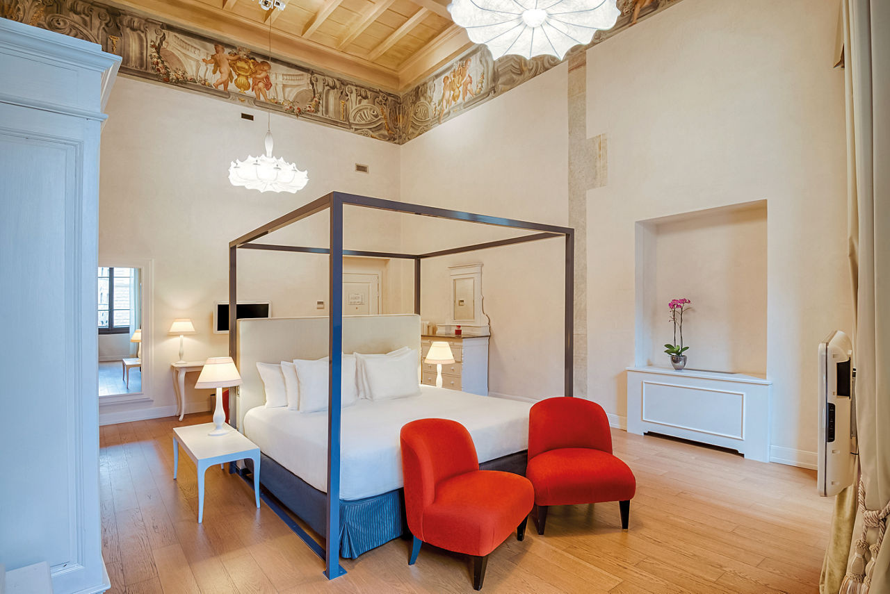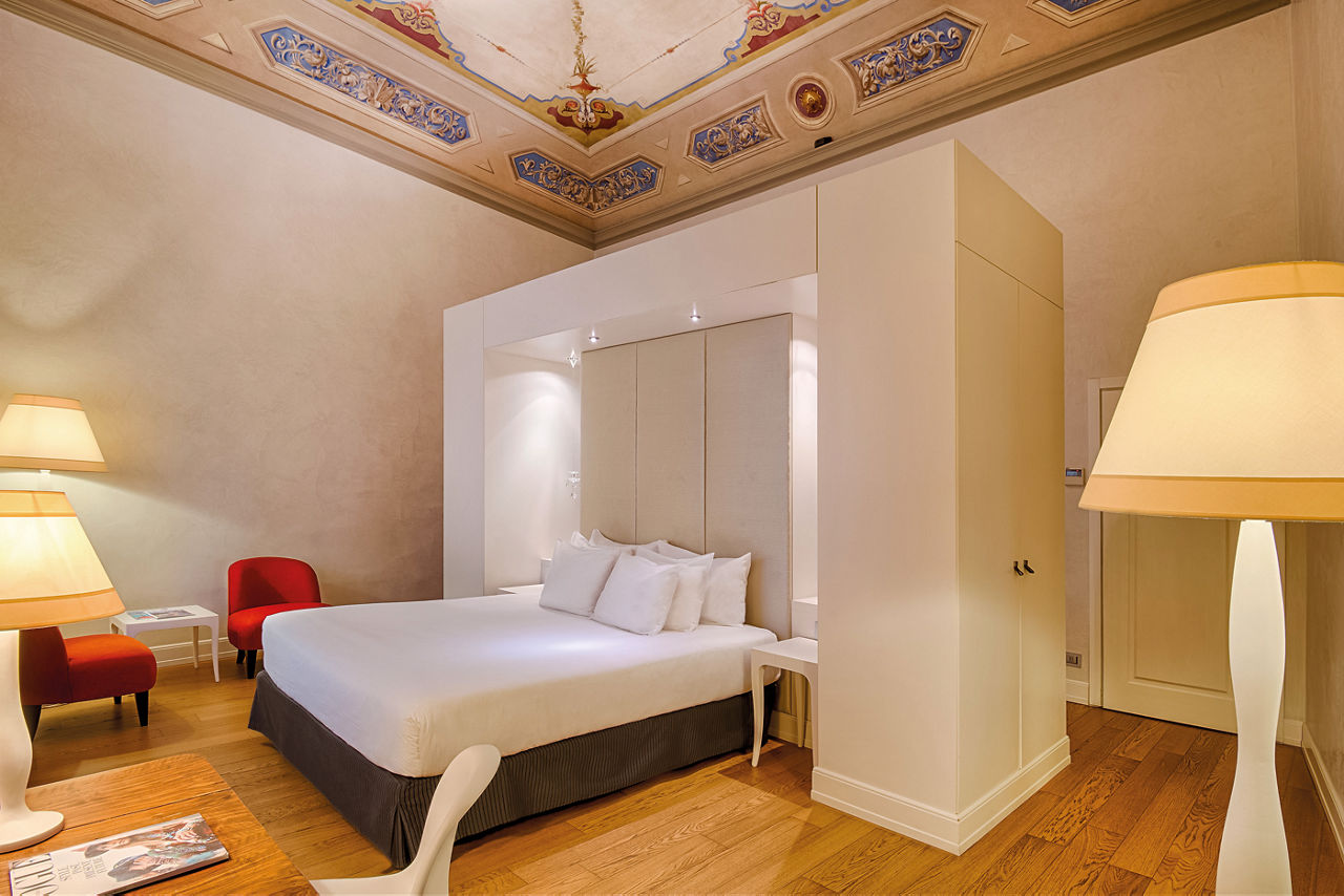 Built in the 12th century, this hotel is a historical landmark and thought to be one of the oldest hotels in Italy. With modern adaptations of classical beauty, the hotel perfectly fuses old-world charm with sophisticated, modern furnishings. The ornate stained glass ceiling in the lobby and the beautiful antique furniture throughout, allows you to experience traditional Florentine luxury while embracing modern comforts for a relaxing stay. With the hotel just a few minutes walk away from some of the main attractions and local transport links, the NH Collection Firenze Porta Rossa is an enviable hotel for your latest city break!Double and twin rooms sleep 2 adults and have bathroom containing a bath or shower, air conditioning, hairdryer, slippers, television, mini-bar and safety deposit box. Room upgrade options and Sole Use rooms are also available.