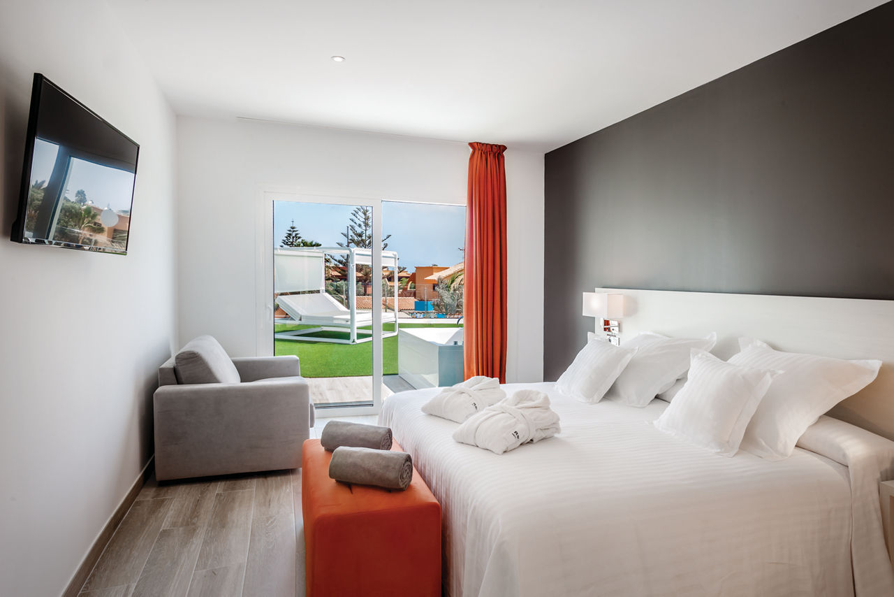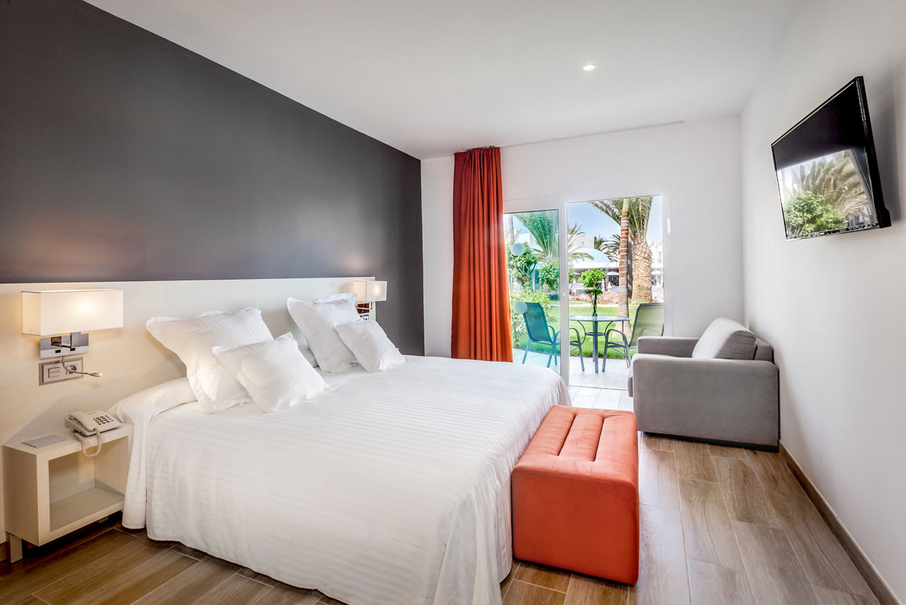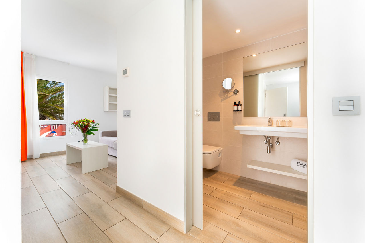 With its modern style and central location, Barcelo Corralejo Sands has that all-ages appeal. There?s a large relaxing pool area, pool bar and spa for those after some RDouble rooms sleep 2 adults and have bathroom containing a shower, air conditioning, hairdryer, safety deposit box*, mini-bar* and balcony or terrace. Room upgrade options and Sole Use rooms are also available.