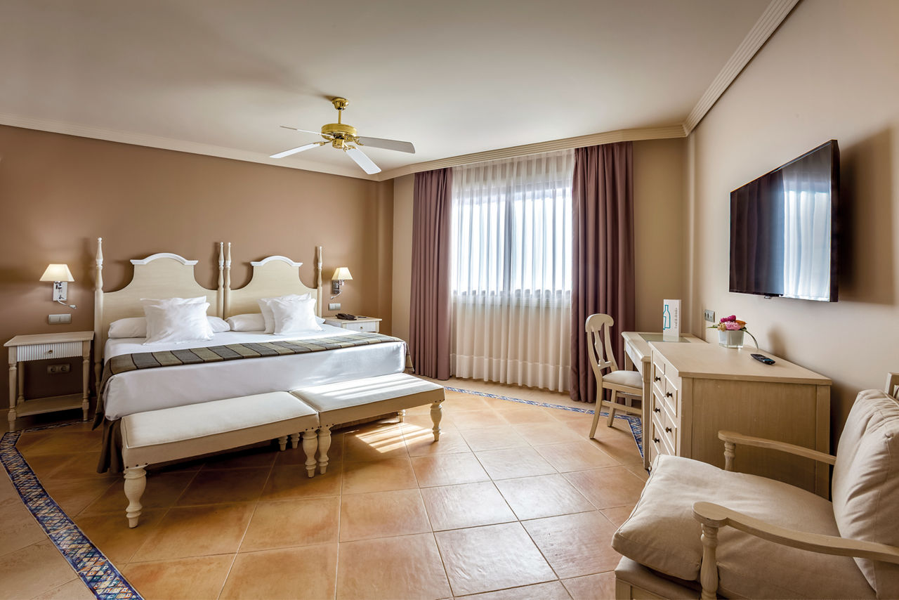 Double rooms sleep up to 3 adults and have bathroom with shower or bath, balcony or terrace with pool or golf course view, air-conditioning, satellite TV and hairdryer. Double rooms for sole use are also available at a supplement.
