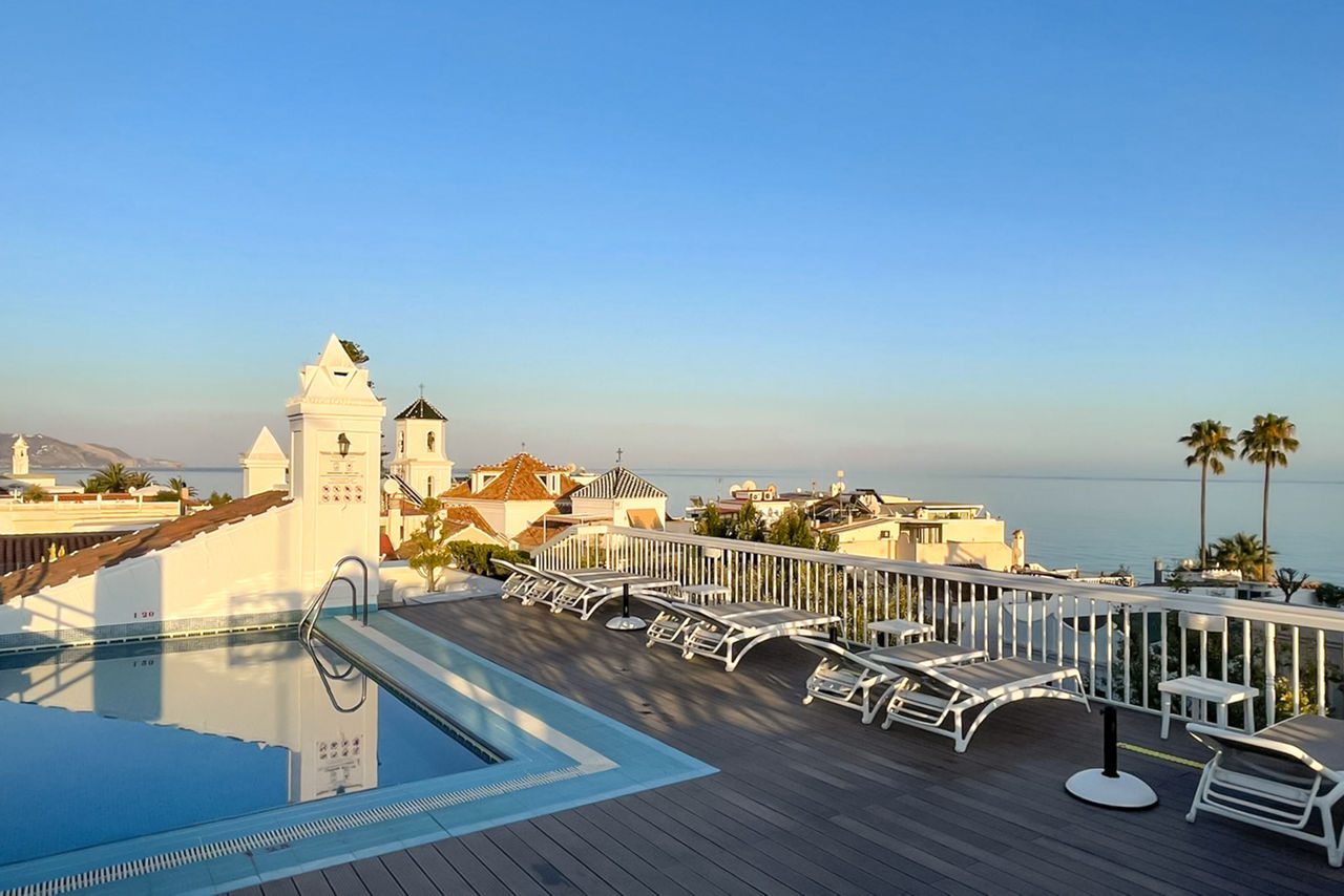 This small family-run hotel is ideally located right in the heart of the picturesque town of Nerja. With bags of charm and personality this hotel is a great choice for couples, looking for a relaxing hotel but just steps away is a wealth of bars, tapas restaurants and boutiques. The small roof top pool and terrace with pretty view is a real gem, ensuring you really can get away from it all.Superior Double rooms sleep up to 3 adults and have a bathroom with bath or shower,hairdryer, satellite TV, air conditioning, heating and window overlooking indoor garden/patio. Superior Vista Plaza rooms sleep up to 3 adults and have a bathroom with bath or shower, hairdryer, satellite TV, air conditioning, heating, min-fridge, French balcony (doors open only, no room for seating) overlooking Cavana Square or Granada Street are also available.