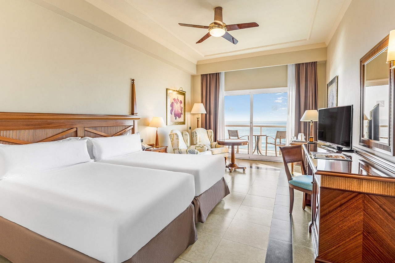 Set on the beach, the luxurious Gran Hotel Elba Estepona combines superb accommodation with attentive service, which really sets this hotel apart. From the unique architecture of its facade and reception area with floor to ceiling sea views, to the three excellent restaurants, as well as an acclaimed Thalasso Spa, offering a variety of treatments and massages, guests will leave feeling totally relaxed and revitalised. All guest rooms have wonderful views of the sea, or lush gardens and large terraces to unwind on in the sun. This idyllic hotel complete with Andalucian charm provides the perfect escape. For the ultimate escape why not upgrade and choose All Inclusive so that you can enjoy sumptuous cuisine and unlimited drinks.Double rooms with Sea View sleep up to 2 adults and 1 child and have a full bathroom, hairdryer Bathrobes & slippers, air conditioning, satellite TV and terrace with balcony. Junior Suites with Sea View sleeping up to 2 adults and 1 child are also available at a supplement; they are larger and have larger balconies up to 19.7m2. Suites with Sea View are also available at a supplement; they are even larger and have a separate living room and 16m2 terraces. Deluxe Family rooms are also available.