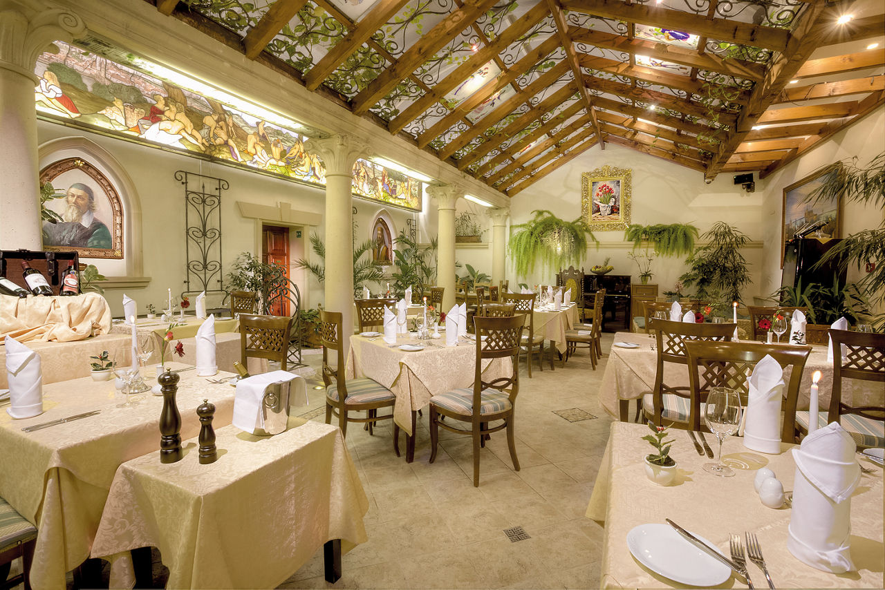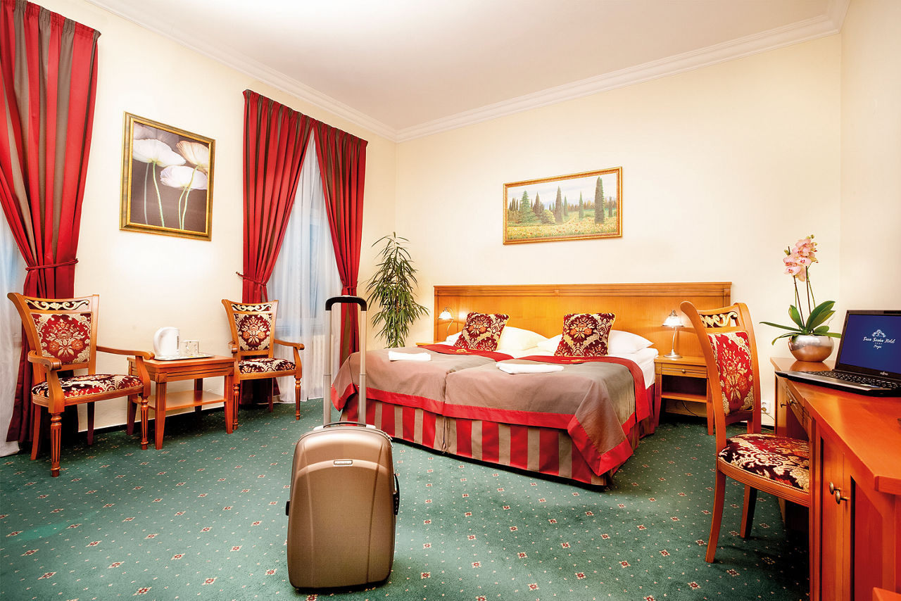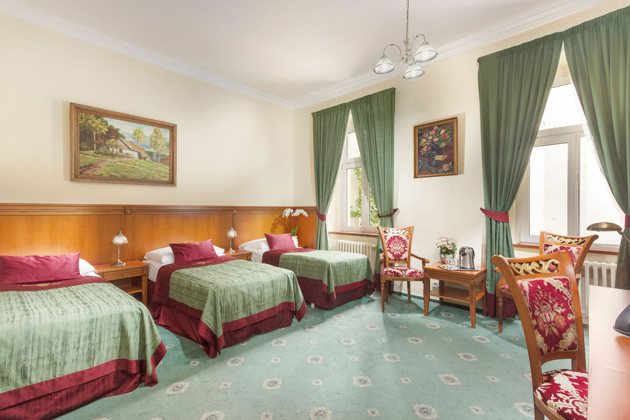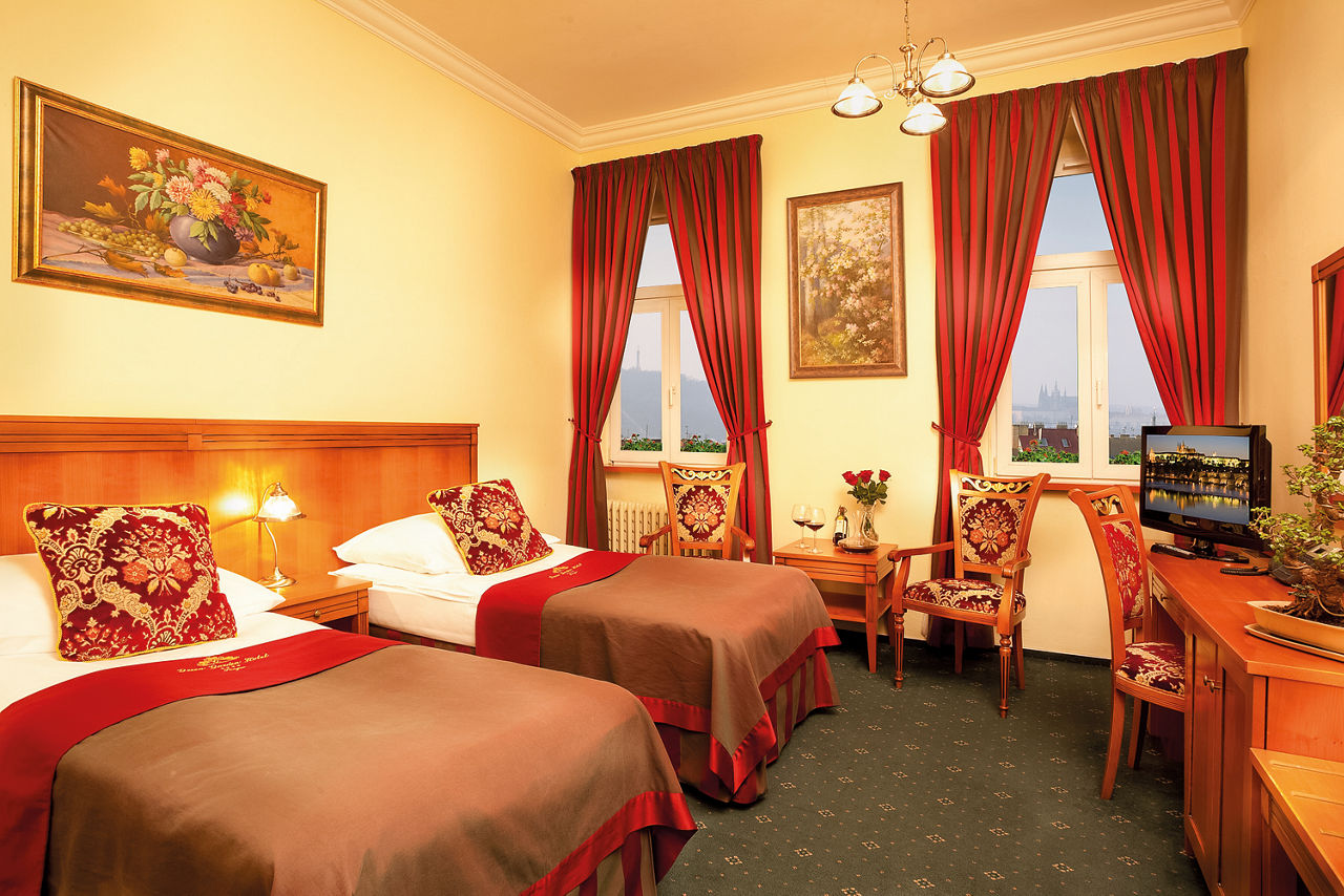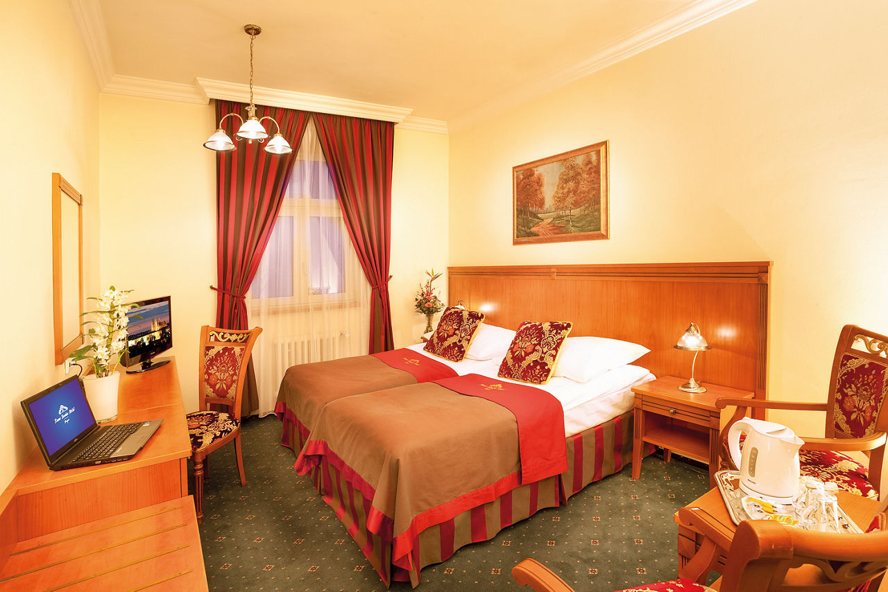 This charming hotel is located just metres from the vibrant heart of Prague city. Old Town Square and Wenceslas Square are only a short walk away, making Prague?s main tourist attractions easily accessible. Rooms are spacious and traditionally designed, and the Green Garden restaurant situated in the picturesque winter garden is perfect for a romantic candle-lit dinner.Standard Double rooms sleep up to 2 adults and have bathroom with a bath or shower, air conditioning, hairdryer, television, safety deposit box, mini-bar* and coffee and tea making facilities.