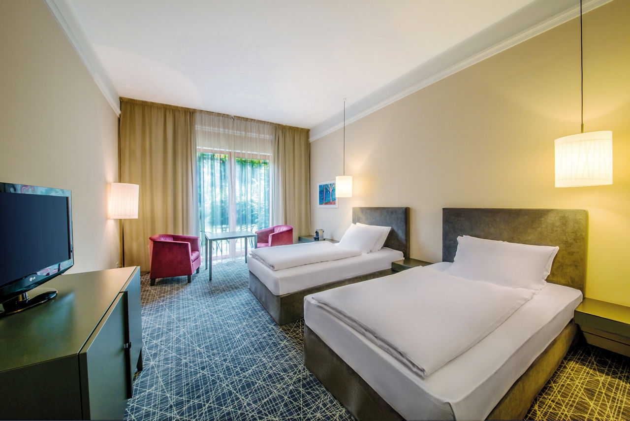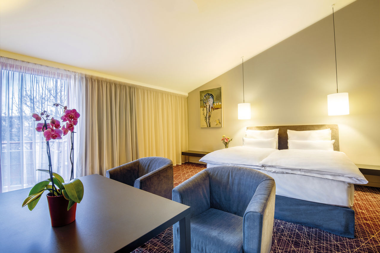 With a fantastic hillside setting on top of Mrazokvka Hill, the NH Collection Prague enjoys a wonderful location equally balanced between the hustle and bustle and the tranquil atmosphere of the outskirts of the city. The hotel is located within easy access of many of the area's main attractions, while the heart of the city centre is just 3 km away providing you with hours of entertainment and exploring to capture. While the rooms offer a comfortable and modern base for your city break, the hotel affords beautiful panoramic views of the city on the Sky Lounge terrace. A fantastic choice for excellent facilities, comfort and convenience.Superior Double or Twin rooms sleep 2 adults and have bathroom containing a bath, air conditioning, hairdryer, television, mini-bar and safety deposit box. Room upgrade options and Sole Use rooms are also available.
