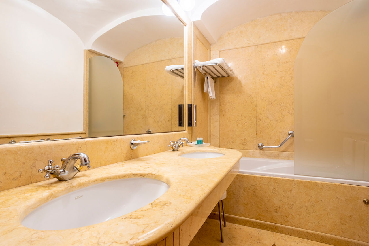 Step into 20th-century elegance, where dazzling Murano glass lights illuminate the lobby and sleek design meets classic marble floors and rich dark-wood accents. By day, relax on the sun-soaked pool terrace, and as evening falls, savour far-reaching views that are simply magical at sunset. This just-for-adults retreat offers All Inclusive as standard, with superb Italian cuisine and tempting buffet selections. And when you?re ready to explore, a complimentary shuttle whisks you straight into the heart of Sorrento.Double and Twin rooms with Inland View sleep up to 2 adults and have bathroom containing a bath or shower, air conditioning, hairdryer, television, safe*, mini-bar* and French balcony. Double room with Pool View, Double rooms with Sea View and Suites are also available.