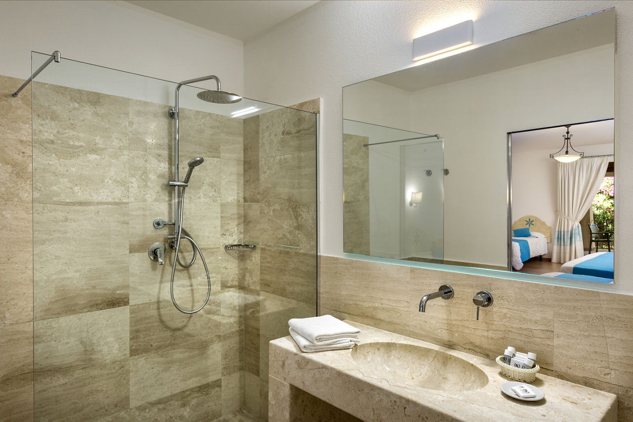 Double rooms sleep up to 2 adults and have bathroom containing a shower only, air conditioning, hairdryer, television, kettle and balcony or terrace. Sole Use rooms are also available.