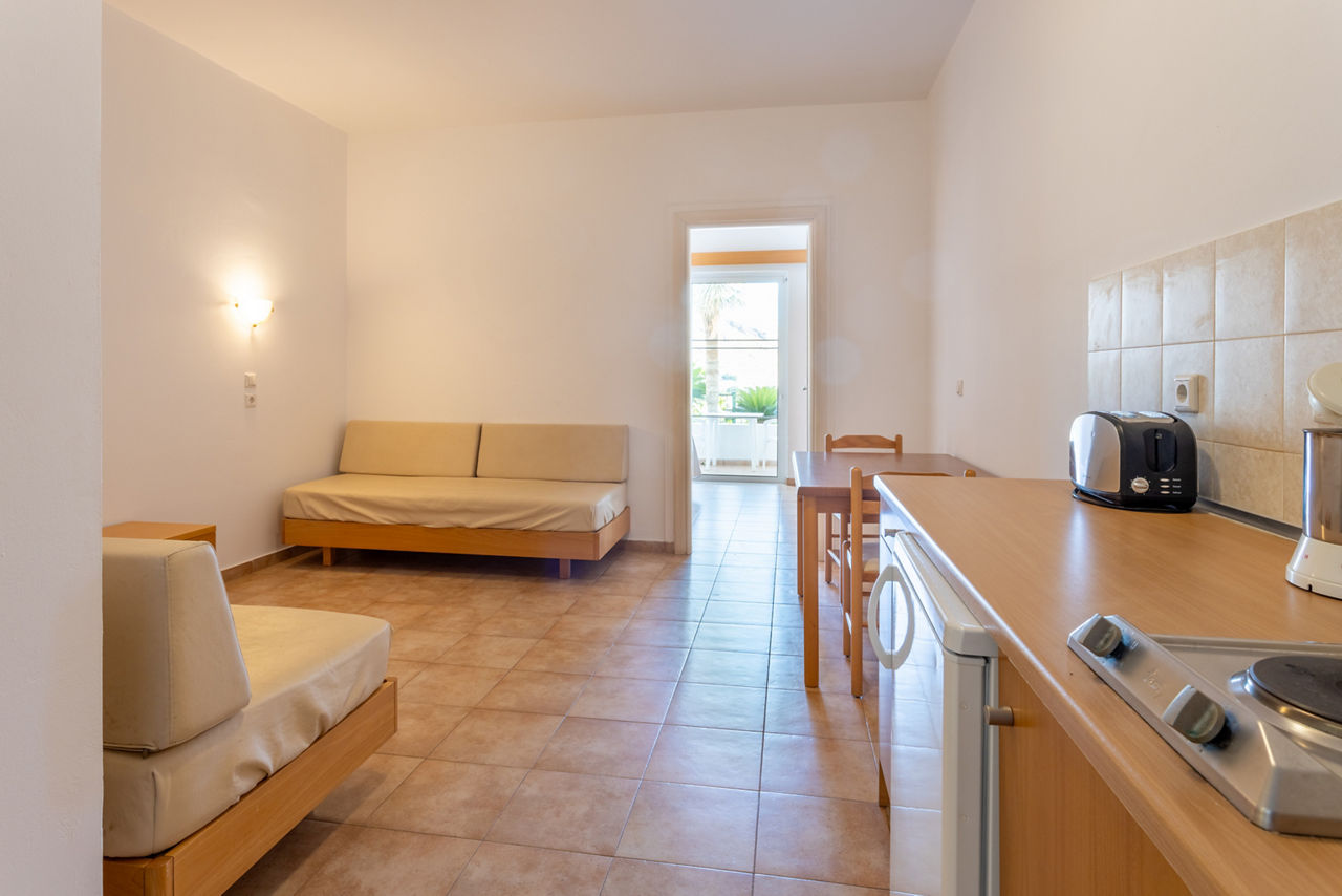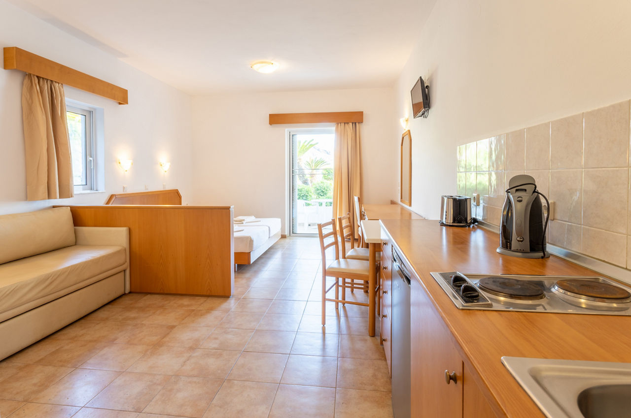 Welcome to a hillside hideout that?s immersed within the rolling Rhodes countryside. Petite and peaceful, Lambis Studios offers light and bright Self Catering accommodation that?s a great base for exploring Lindos and beyond. The hotel also boasts a pretty pool scene immersed within flourishing gardens. The apartments and studios come complete with balcony or terrace and a kitchenette too, but if you don?t fancy cooking, there?s the poolside snack bar. For the ultimate escape, why not opt for Harmonia Villa or Athena Villa for total relaxation in your home away from home! Just a kilometre away is Lindos town, it?s off-the-scale charming with its sugar-cube houses, tucked-away boutiques, and of course the famous Acropolis that stands proud above the town. Not to mention the gorgeous golden beach!Studios sleep up to 4 adults and have bathroom containing a shower, air conditioning*, hairdryer, television, fridge, double cooking rings, toaster, kettle and balcony. One Bedroom apartments are also available.