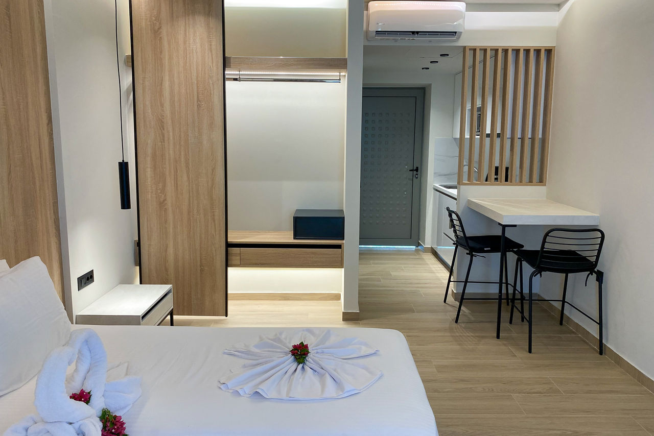 Barbie Castello is the perfect base for your holiday on the beautiful island of Rhodes whether you wish to explore and see the sights or simply sit back and relax! Offering guests bright and modern rooms, this gem of a property is also near the beach for you to soak up the sun! Ialyssos resort centre and Rhodes Town are also well in reach with plenty of local restaurants, shops, bars and tavernas to sample delicious local cuisine. Guests staying at Barbie Castello can also use the swimming pool and bar facilities at Barbie Studios which is adjacent to the property.