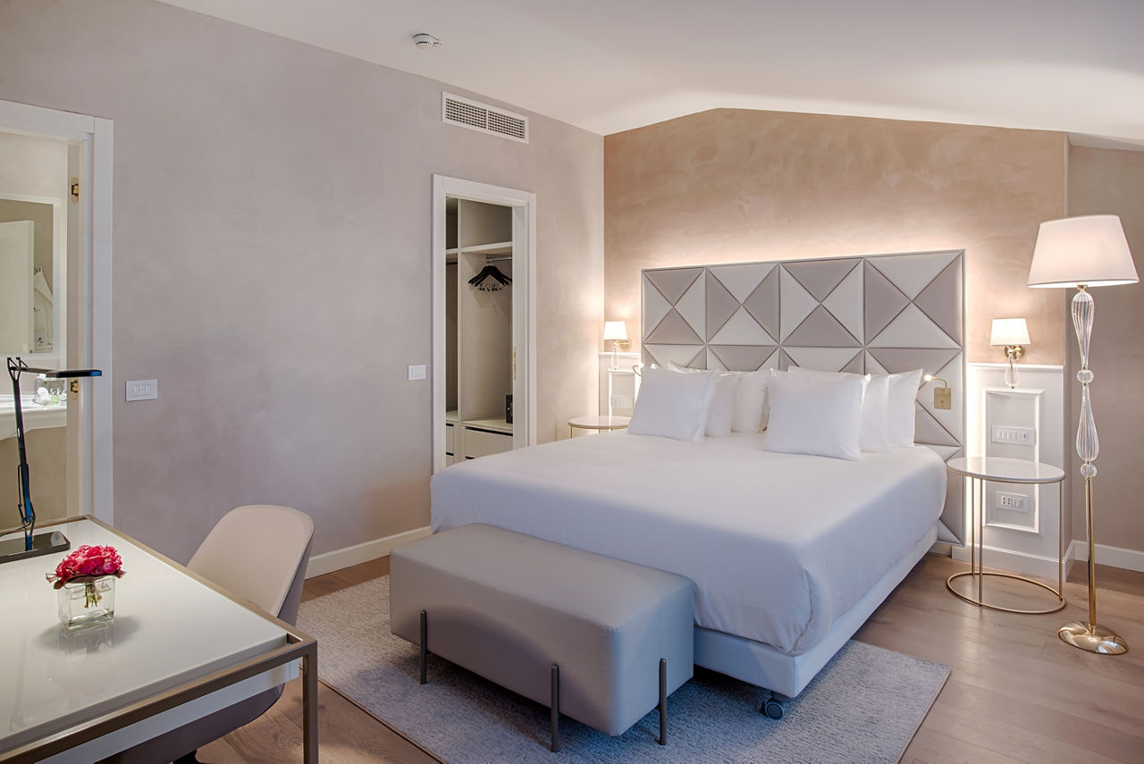 The elegant 5-star NH Collection Palazzo Verona was built around Roman ruins offering a perfect blend of 14th century history combined with modern touches. With its enviable location close to the city centre, main attractions and transport links, exploring this stunning city won't be difficult. After a busy day, relax in the spacious and stylish rooms before enjoying a delicious Italian meal with fine wine at the hotel's own restaurant.Superior rooms sleep up to 2 adults and have bathroom with bath or shower, hairdryer, air conditioning, flat-screen television, coffee making facilities, bathrobe and slippers, safety deposit box and minibar*. Sole Use rooms are also available.
