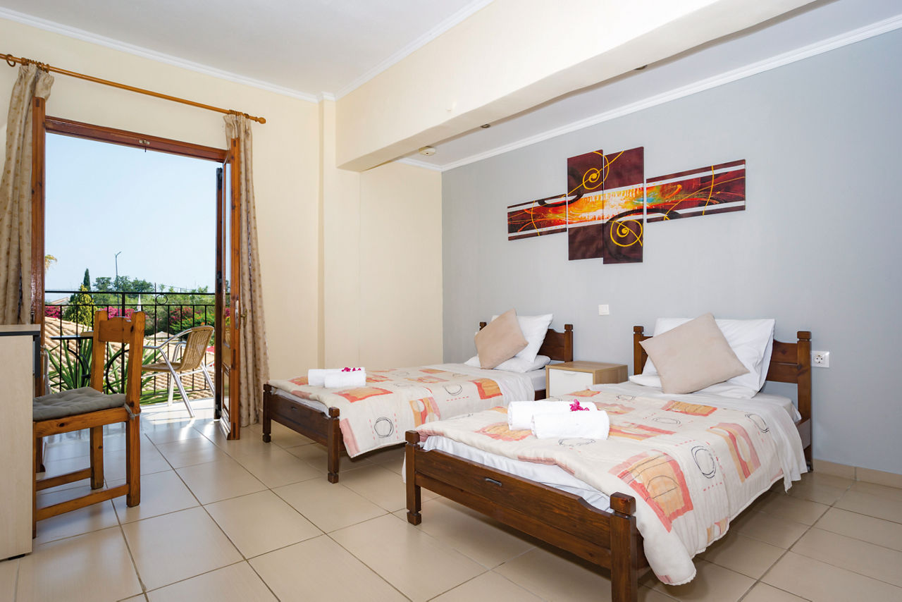 The popular family-run Melinda Apartments is set back just outside the heart of Roda village, surrounded by olive groves and a beautiful mountain backdrop. The peaceful location is perfect for those looking to relax and unwind, whilst the pool and bar are on hand to keep you feeling revitalised throughout the day.Standard studios sleep up to 2 adults and have bathroom containing a shower and balcony or terrace. Room upgrade options are also available.