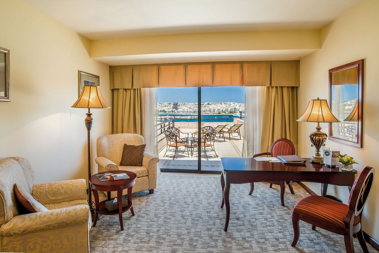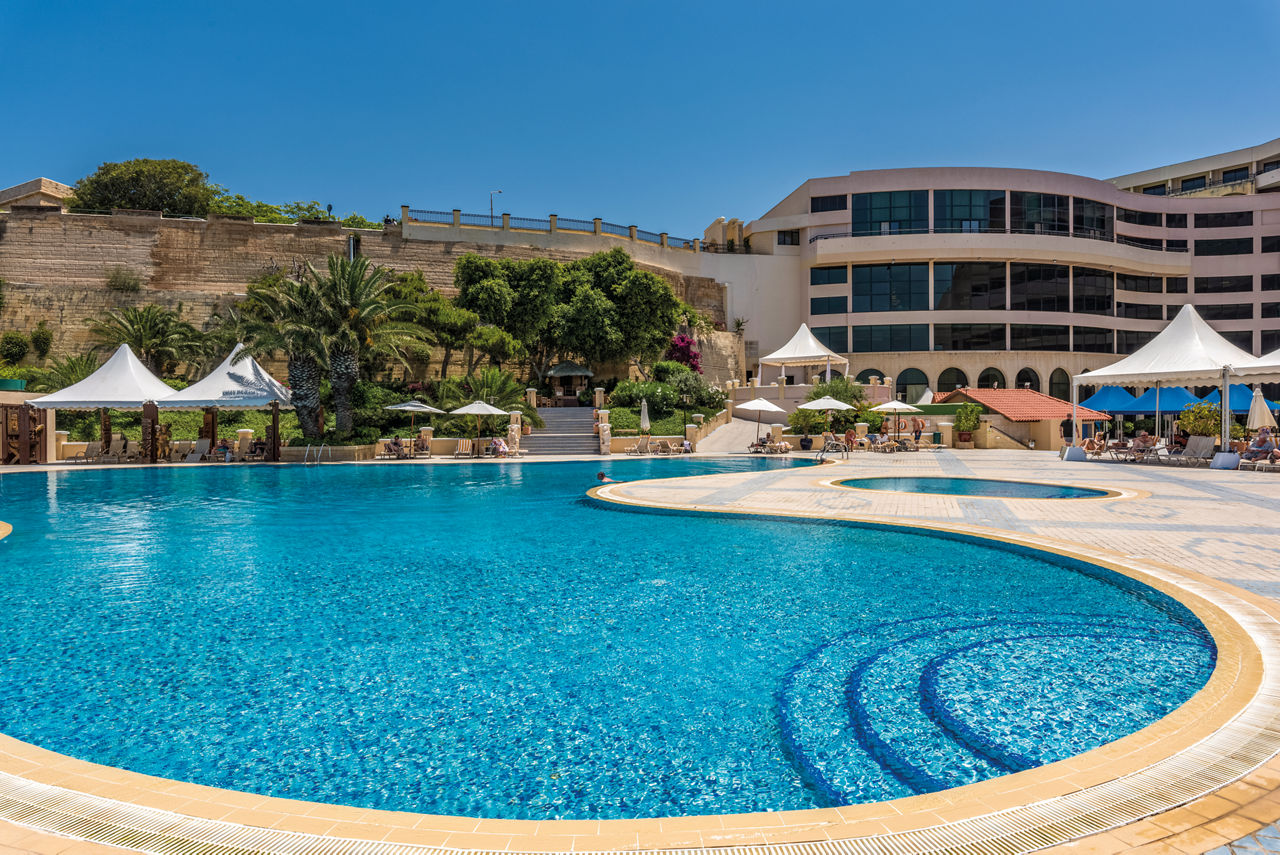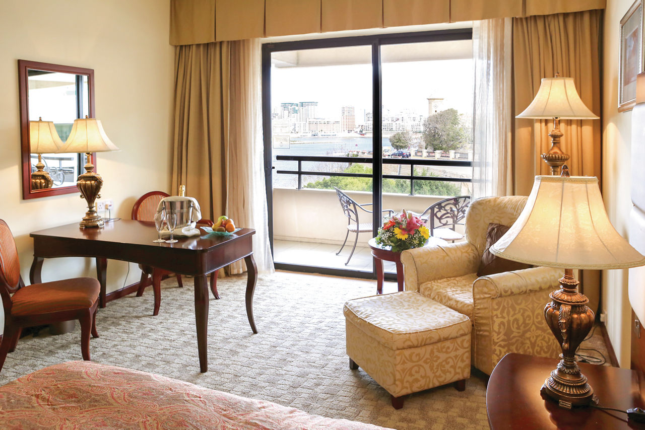 Blessed with spectacular views of Marsamxett Harbour, the Grand Hotel Excelsior has plenty to shout about. Located between the sea and the UNESCO-listed capital, Valletta, you?ll be in prime position for exploring. The rest of the island?s easily accessible too. The facilities are fabulous, including the lavish spa and spacious rooms. The best bit? The seafront pool, where you can take a dip against the backdrop of Manoel Island. The picturesque panoramas continue in the three restaurants. Italian? Maltese? You can try it all here. The private beach is the cherry on top.Deluxe rooms sleep up to 2 adults and 1 child and have a bathroom with shower over bath, hairdryer, air conditioning, satellite TV, safety deposit box, mini-bar*, tea and coffee making facilities and a balcony or terrace. Deluxe rooms with Side Sea View, Deluxe Sea Front rooms, Superior rooms, Deluxe rooms for Sole Use, Deluxe rooms with Side Sea View for Sole Use and Deluxe Sea Front rooms for Sole Use are also available.