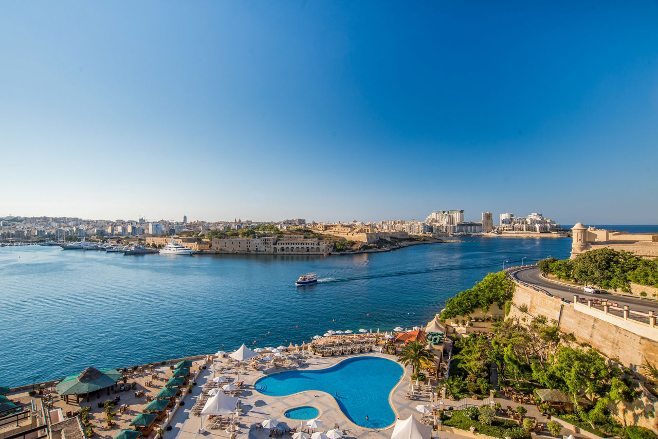 Seafront with private beach. 1km from Valletta resort centre or accessible via 88 steps. 1km from Sliema ferry port. 7km from St Julians and St George's Bay. 12km from Mdina. Complimentary shuttle bus running at set times per day to Valletta centre.Eating And Drinking