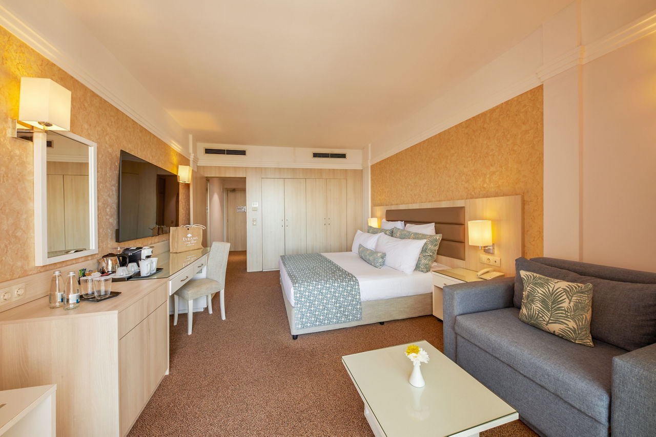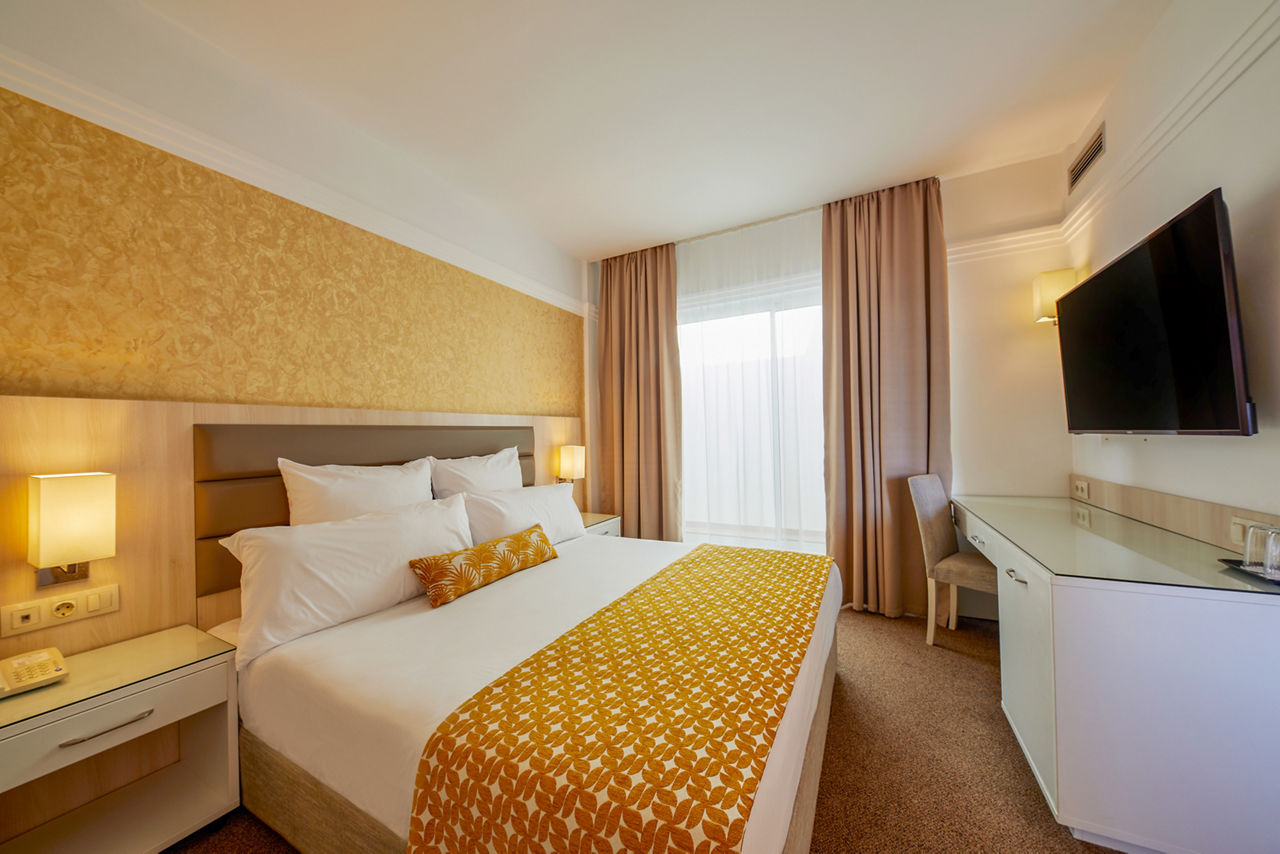 Right on the beachfront, this hotel offers an All Inclusive Plus package that you and your family will love. With a fantastic range of restaurants which are bound to tickle your taste buds alongside a selection of great bars, you?ll be spoilt for choice. Appetites more than satisfied, you can take a dip in any of the five pools set amongst stunning grounds or enjoy a trip to the spa. The kids will be well entertained with a splash park and a children's club, whilst the grown-ups soak up the sunshine around the pool.Double Park View rooms sleep up to 2 adults and have bathroom with a shower, hairdryer, air conditioning, flat-screen television and safety deposit box*. Room upgrade options are also available.