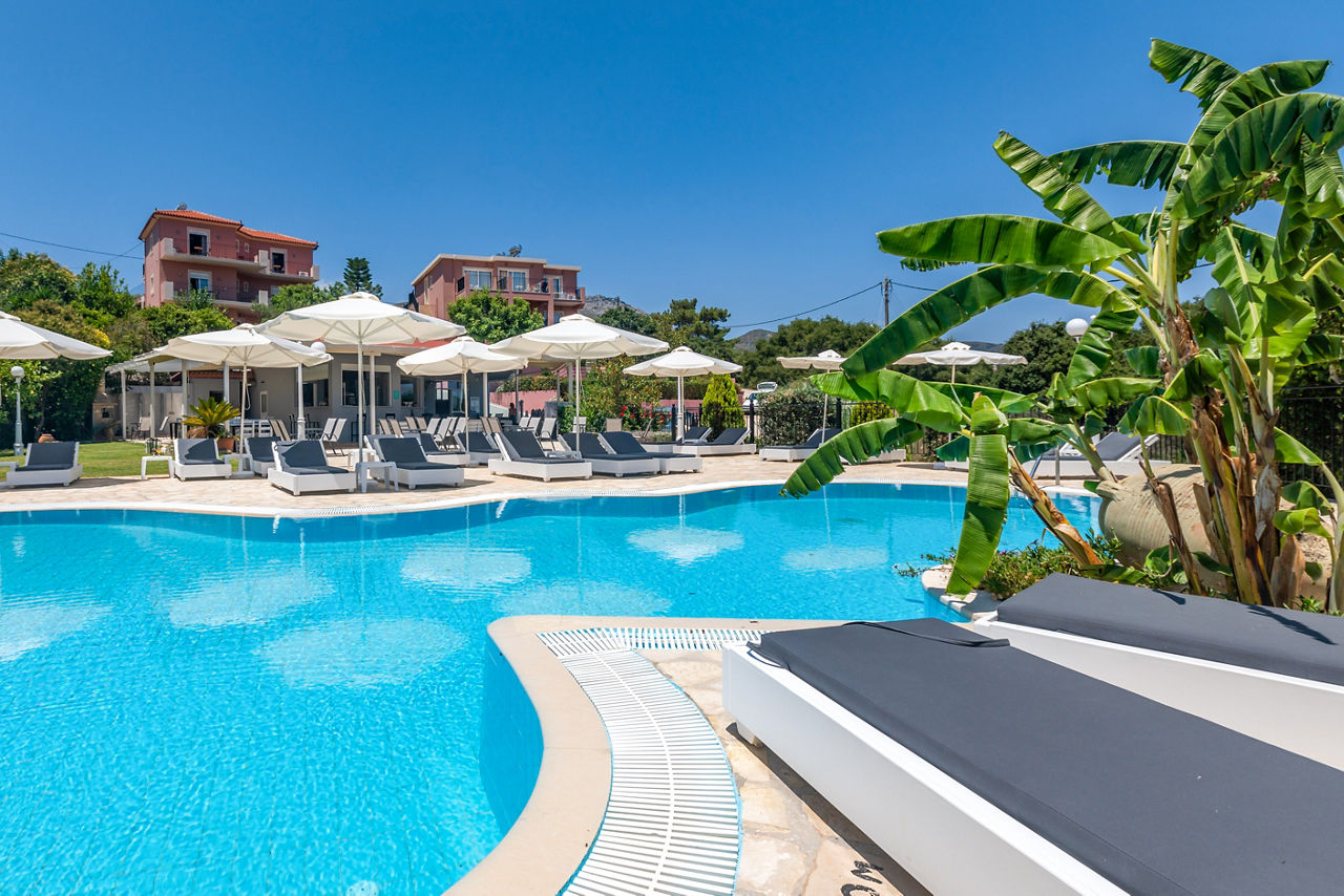 The family-run Pelagos Apartments are great for those seeking a friendly relaxing break. The peaceful pool and spectacular sea views make this a great place for families and couples looking to stay just outside of the resort of Skala. The Studios and Apartments come fully equipped with a small self catering kitchenette meaning that you have the freedom of making food when you wish. The personalised service ensures guests are made to feel at home at this authentic retreat.Studios sleep up to 3 adults and have a bathroom containing a shower, air conditioning*, hairdryer, fridge*, kettle* and balcony. One and Two Bedroom apartments are also available.