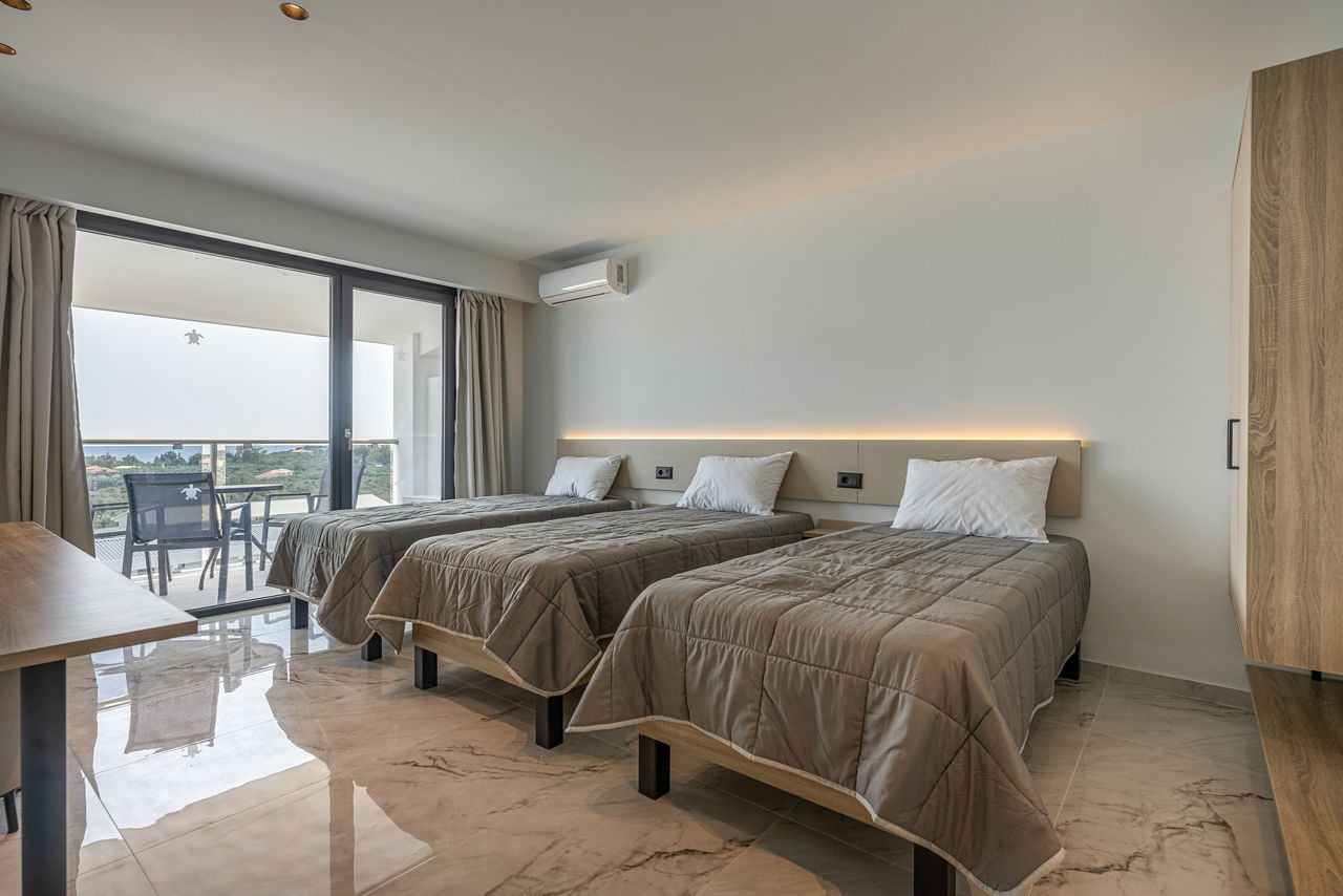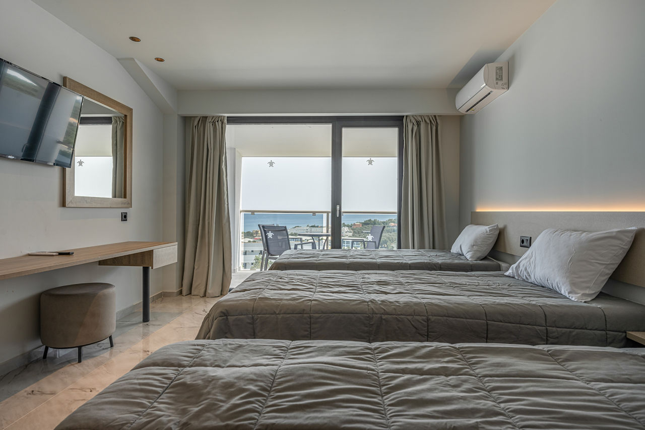 Families will love everything the Caretta Paradise & Waterpark has to offer. The waterpark is not to be missed and is sure to provide children of all ages thrills and excitement. There are so many great activities and facilities at hand for all to enjoy too. The hotel offers family rooms which are modern, comfortable and spacious, boasting separate sleeping areas for adults and children. The golden beach is just 250m away or how about a day trip to Tsilivi, just 2km away? Ticking a lot of boxes? Let?s see if the range of restaurants and bars and All Inclusive board as standard is enough to sway you?Family rooms sleep up to 4 adults and have bathroom, air conditioning*, hairdryer, flat screen television, fridge, kettle and balcony or terrace. Family Swim-up rooms are also available.