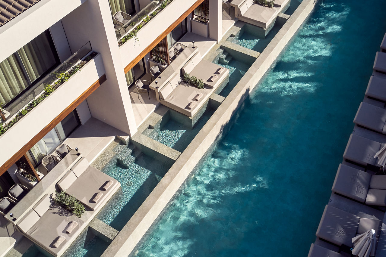The sophisticated Contessina Hotel will impress from the reception through to the stylish cocktail bar and fantastic pool area. The spacious rooms are modern with fresh interiors combined with all the mod-cons to ensure a comfortable stay. This chic hotel is ideal for beach lovers and guests looking for a central hotel with a great atmosphere.Double and Twin rooms sleep up to 3 adults and have bathroom containing a shower, air conditioning*, hairdryer, flat screen television, fridge and balcony.