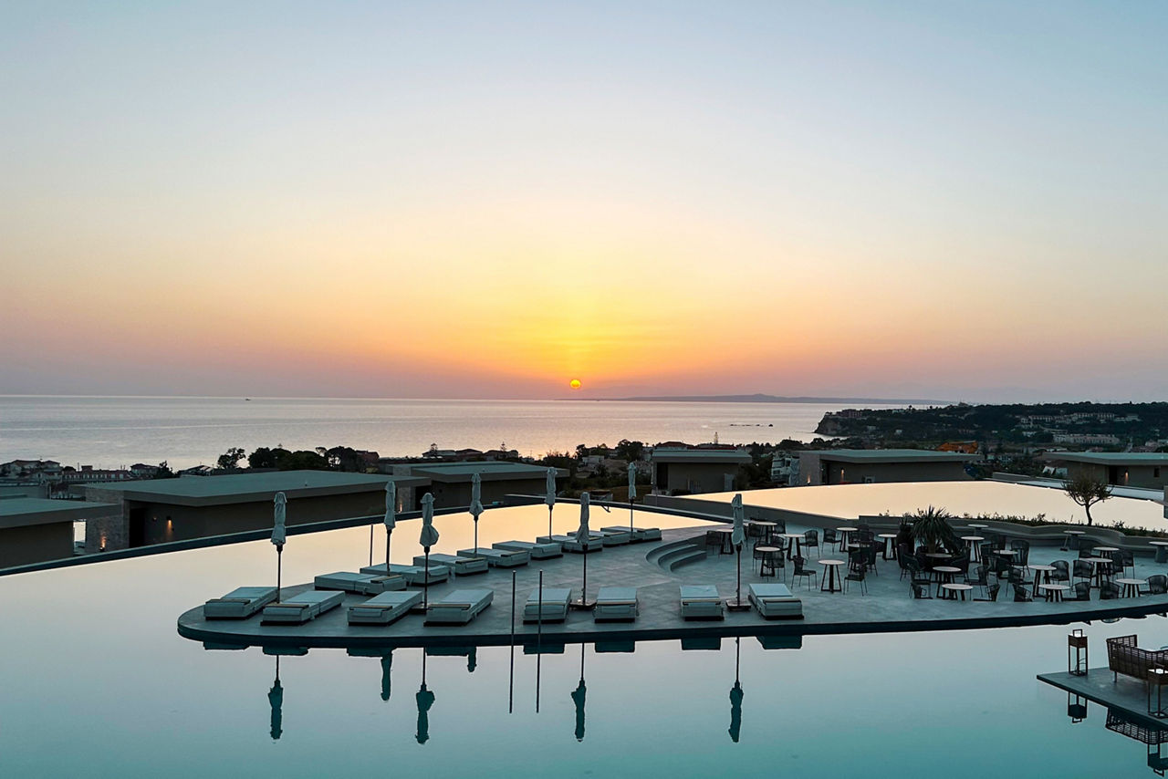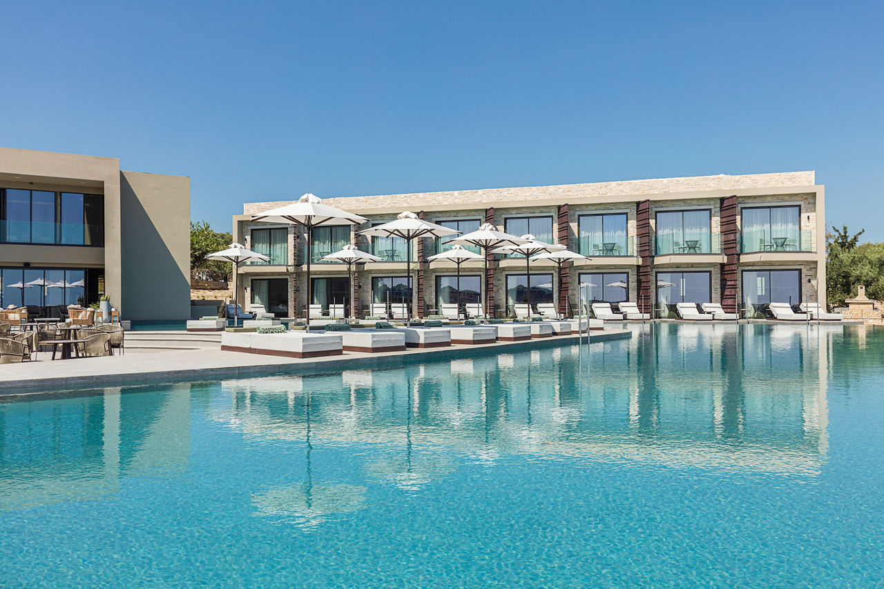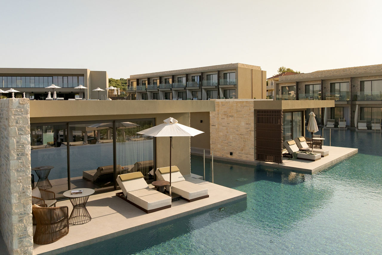 Perched on a hillside promising panoramic views of the glittering Ionian Sea, King Jason Zante by Louis Hotels offers the epitome of refined sophistication. This adults-only sanctuary meshes contemporary elegance with laidback bohemian charm, where infinity pools and swim-up suites create the illusion of floating above water. Its unique, island-inspired design sets a new standard in Tsilivi - as does the All Inclusive Plus board, which heroes three restaurants and two stylish bars. While you relish comfort at every turn, the fabulous facilities include a state-of-the-art gym, calming Purai spa, and occasional live music sets on throughout the week.