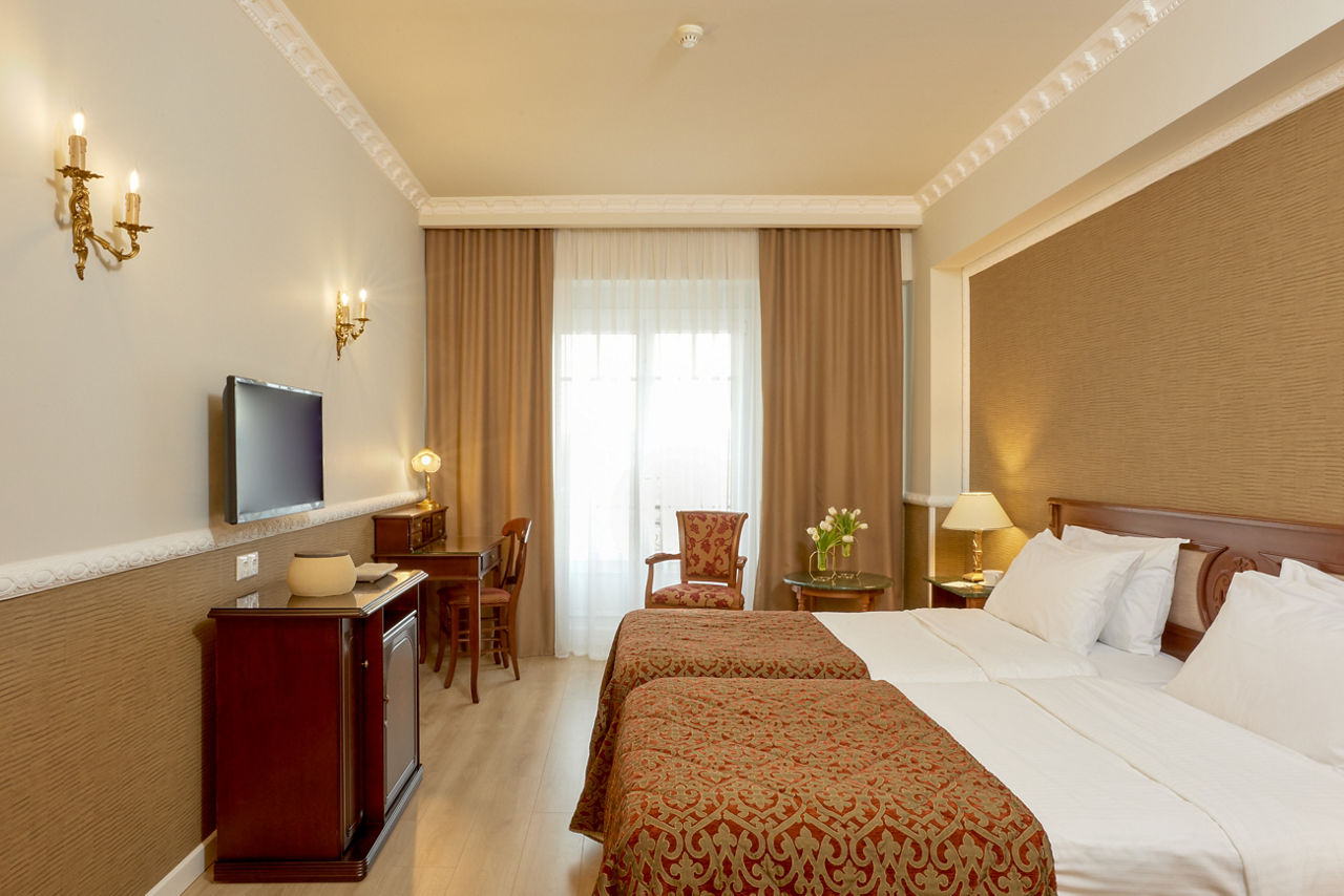 Grand by name Grand by nature! Looking for a luxury experience just outside the hustle and bustle of the city, enter Grand Hotel Palace. The hotel embodies classic décor with modern touches and offers a peaceful setting for your city break. Don't worry getting into the city is easy with a complimentary regular shuttle service. Just ask reception, Grand Hotel Palace is guaranteed to impress for your city break to Thessaloniki.Deluxe Double or Twin rooms sleep up to 2 adults and 2 children and have bathroom containing a bath, hairdryer, bathrobe and slippers and tea and coffee making facilities. Room upgrade options are also available.