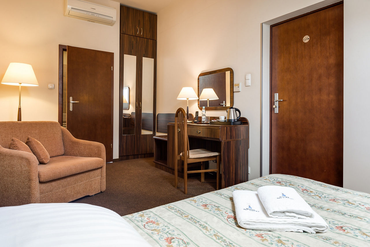 Hotel Wit Stwosz combines traditional charm with a welcoming atmosphere, offering guests an authentic stay in the heart of Kraków. The hotel is just 300m from the Main Market Square, 1km from Wawel Castle, and close to the leafy Planty Park that surrounds the Old Town. With its prime central location, it is the perfect base for exploring the city?s most iconic sights.Standard Double or Twin rooms sleep up to 2 adults or 1 adult and 1 children and have bathroom containing a shower, air conditioning, safety deposit box* and television. Room upgrade options and Sole Use rooms are also available.