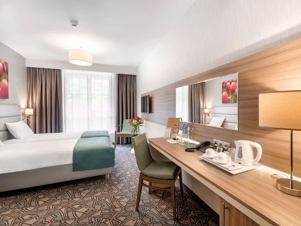 An exclusive hotel within the heart of the historic Jewish District, the Golden Tulip Kazimierz is in an ideal location near many of the main attractions. Rooms are chic and contemporary and offer all the modern amenities you would expect plus the restaurant and stylish bar are the ideal way to relax and wind down after a day exploring. With its modern design and great location this the perfect choice for enjoying a break in this amazing city.Double or Twin rooms sleep up to 2 adults and have bathroom containing a bath or shower, hairdryer, flat screen television and tea and coffee making facilities. Room upgrade options are also available.