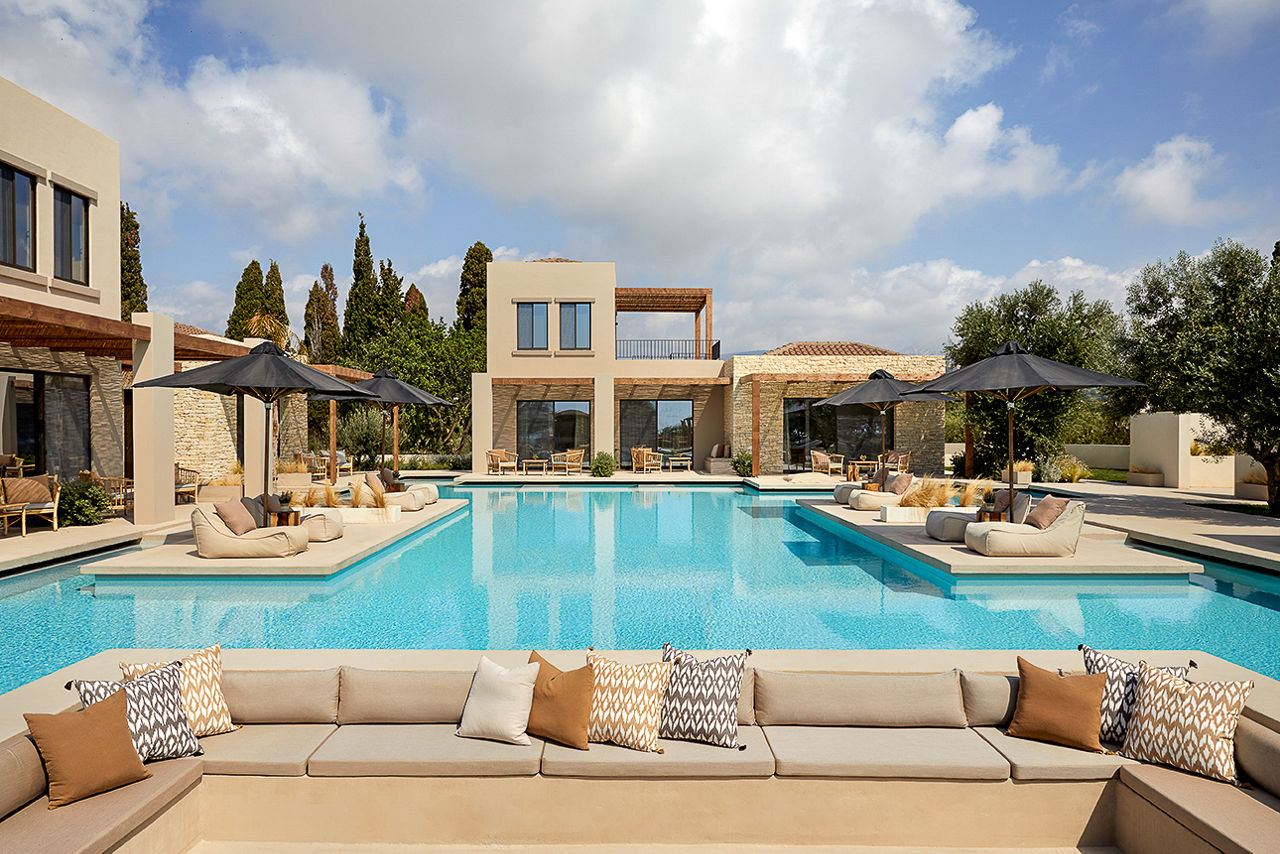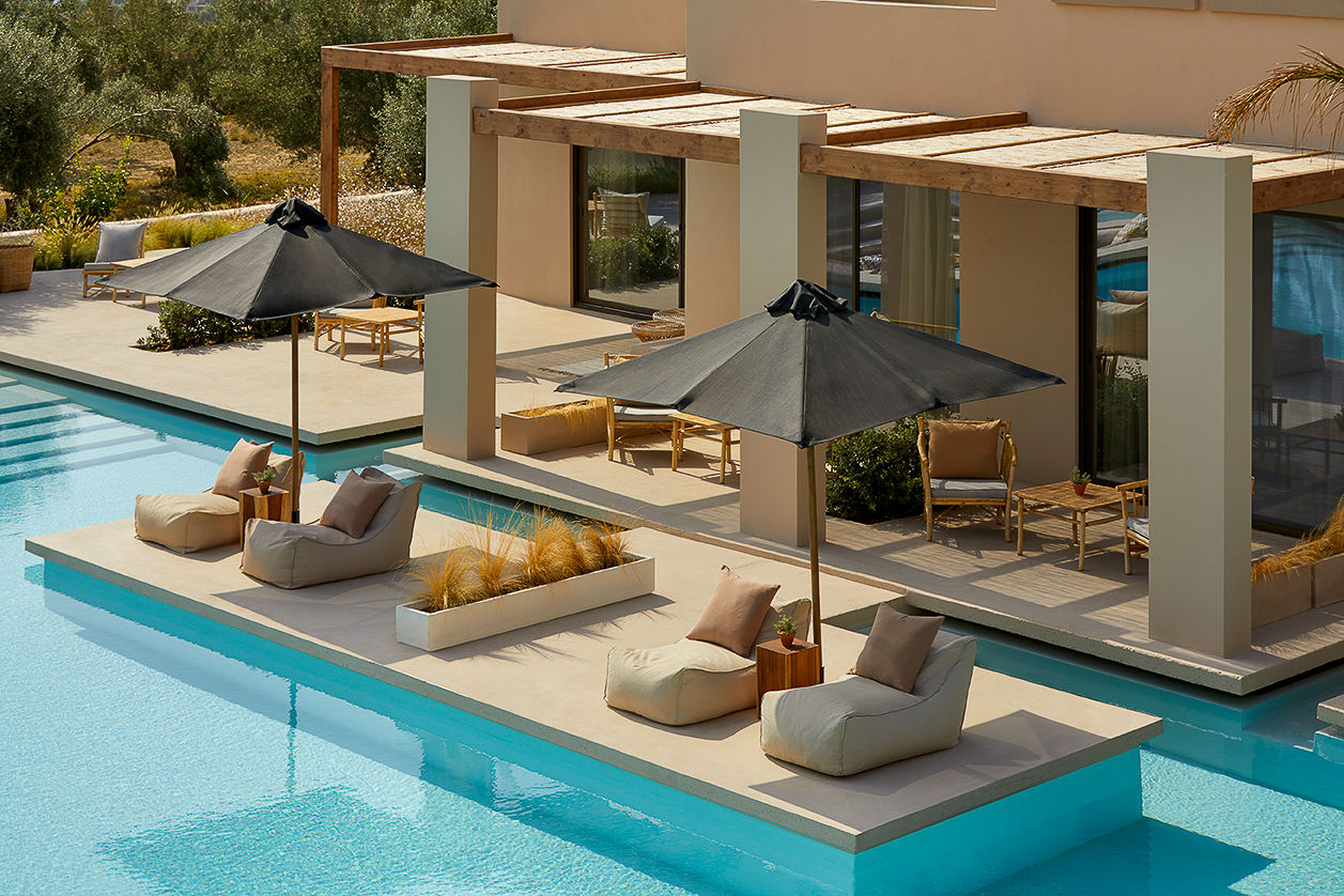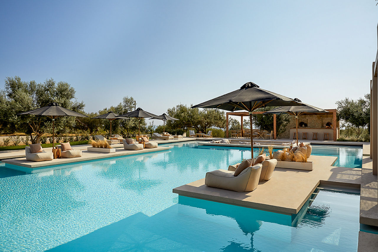 Nestled among olive groves, the boutique, adults-only, Aelia Suites is tailormade for private and peaceful stays. Mornings are all about savouring breakfast served daily to your rooms to be enjoyed on your private balcony or terrace, while afternoons can be spent lazing on comfy sun loungers or taking a dip in the pool. Rooms are modern and minimalist, decorated in calming earthy tones. Plus, they all come with either a shared swim-up pool or whirlpool for ultimate relaxation. The architecture is to be admired, and the views are to be remembered. Why not visit one of the sand beaches nearby too? You'll never want to leave this blissful Greek getaway.