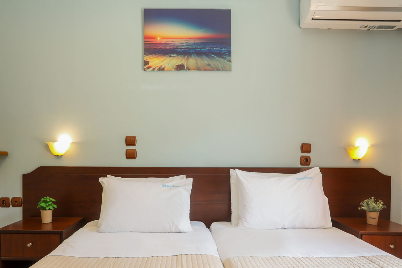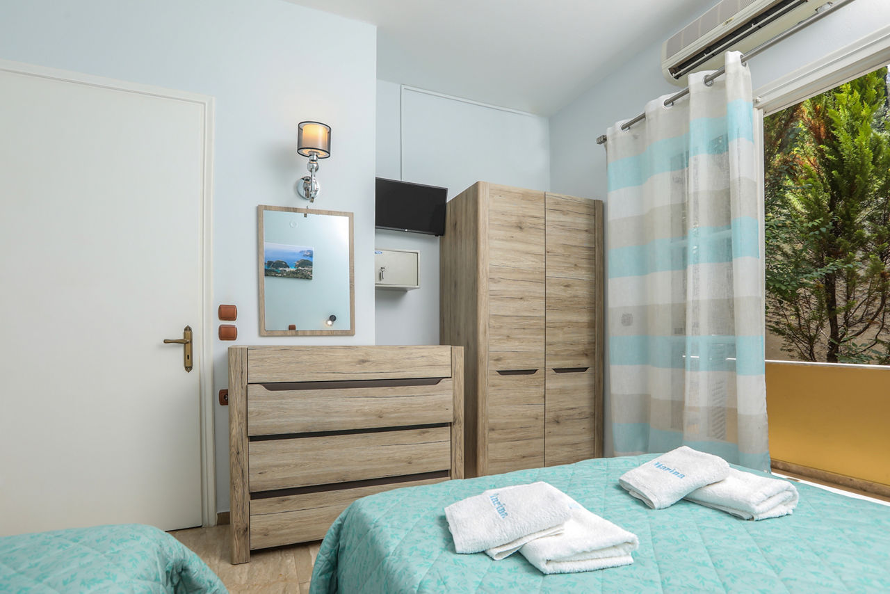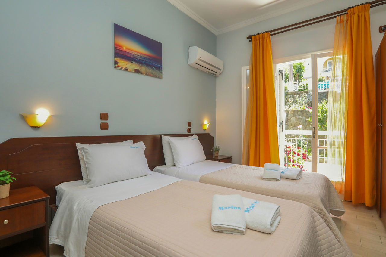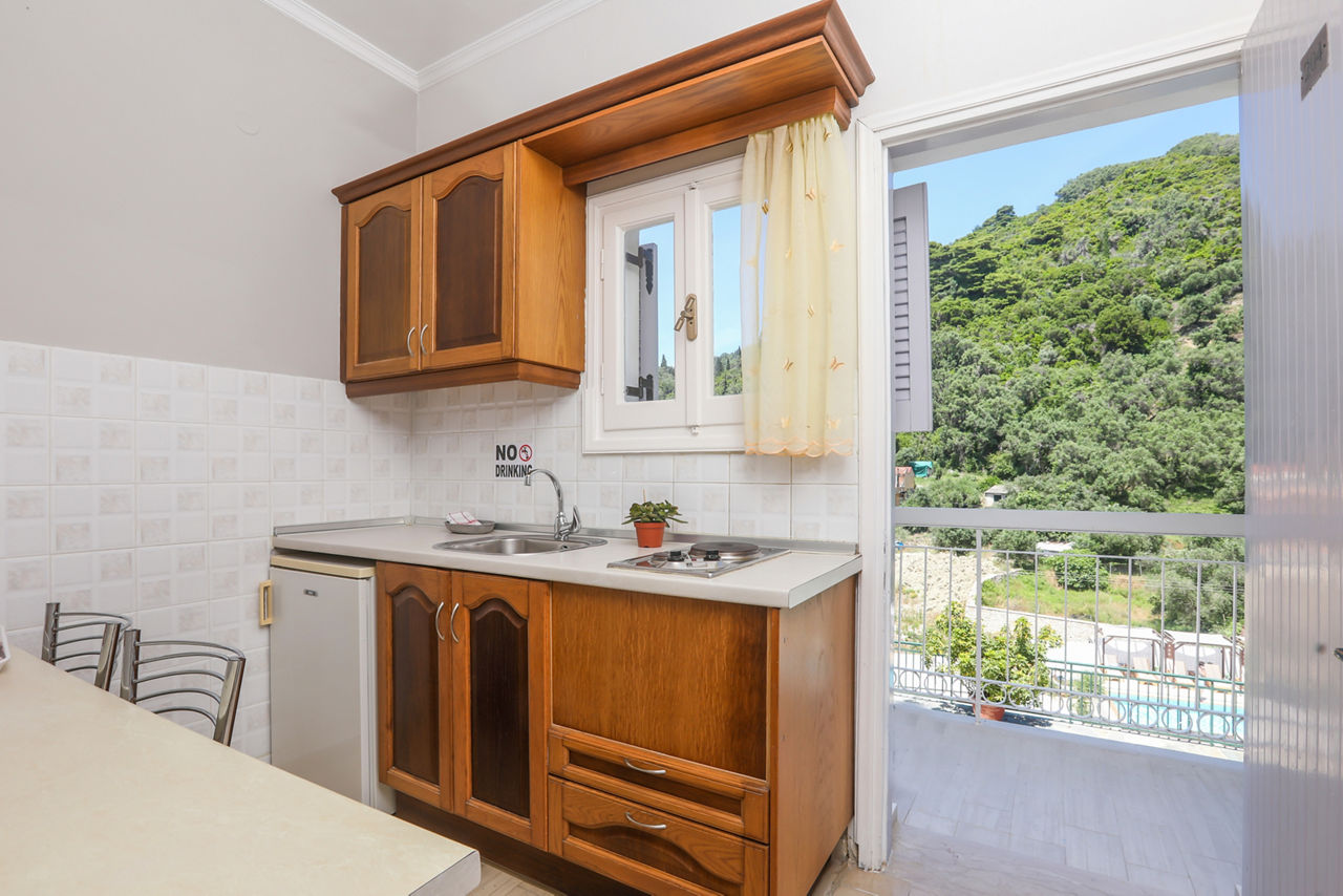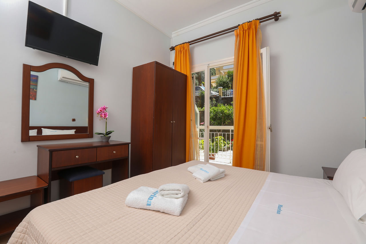 Up on the hill you will find the typically Greek, Marina Apartments, nestled between the luscious green trees you will instantly feel relaxed soaking up the sun around the pool or take a dip and enjoy a ice cold drink from the swim up bar. It is only a short stroll to the resort centre and beach where you can find a selection of bars and restaurants to sample some local delights.