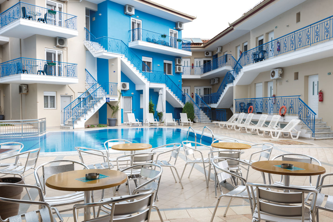 Authentic Greek charm, topped off by flag-matching blue and white architecture? We?re talking about Stratos Hotel. This thrifty three-star property is warm and welcoming, traditional as they come, and great value for money. Frame your days around flaking out by the pool in the sun and then pottering to Afitos or the beach. The comfy double rooms have everything you?ll need for a restful stay on BDouble rooms sleep up 2 adults and have bathroom containing a bath or shower, air conditioning, hairdryer, television and balcony or terrace.