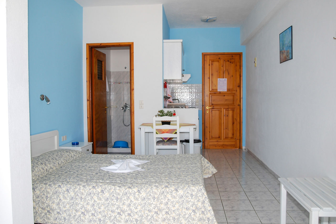 Studios sleep up to 3 adults and have bathroom containing a shower, air conditioning*, fridge, double cooking rings and a balcony or terrace.