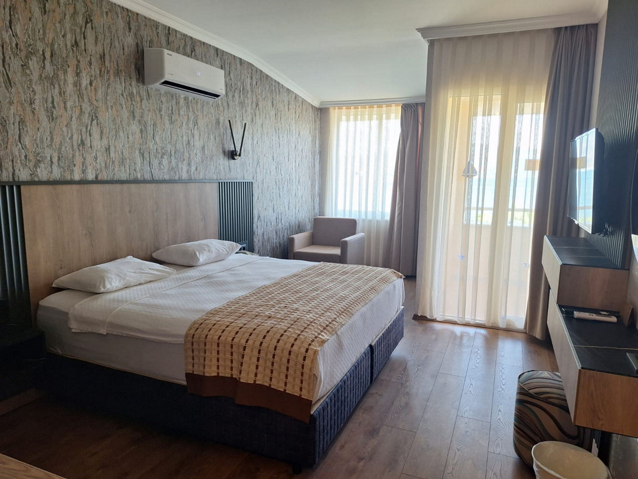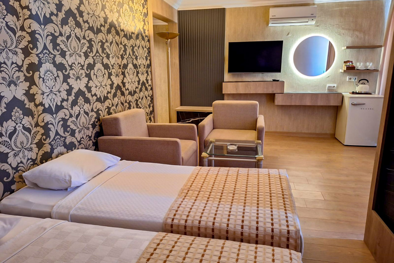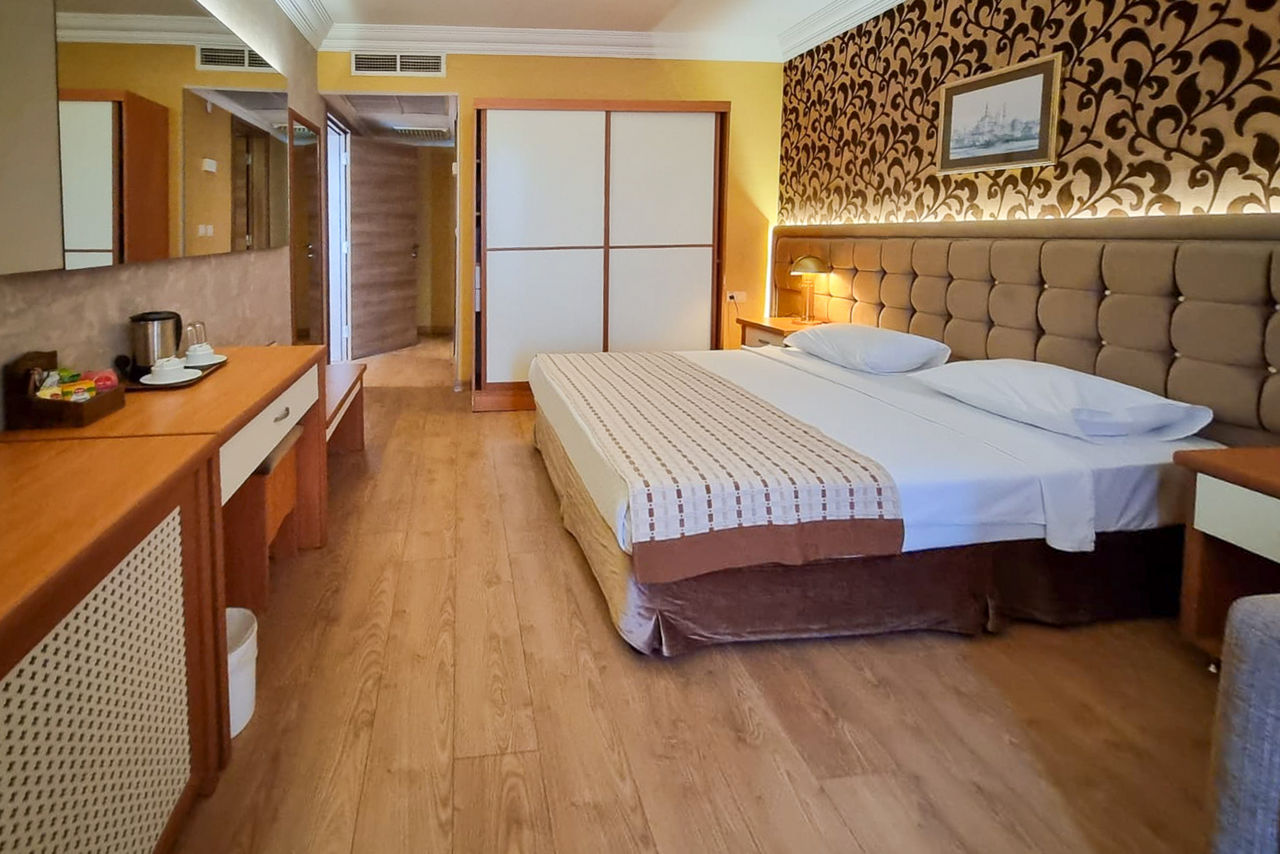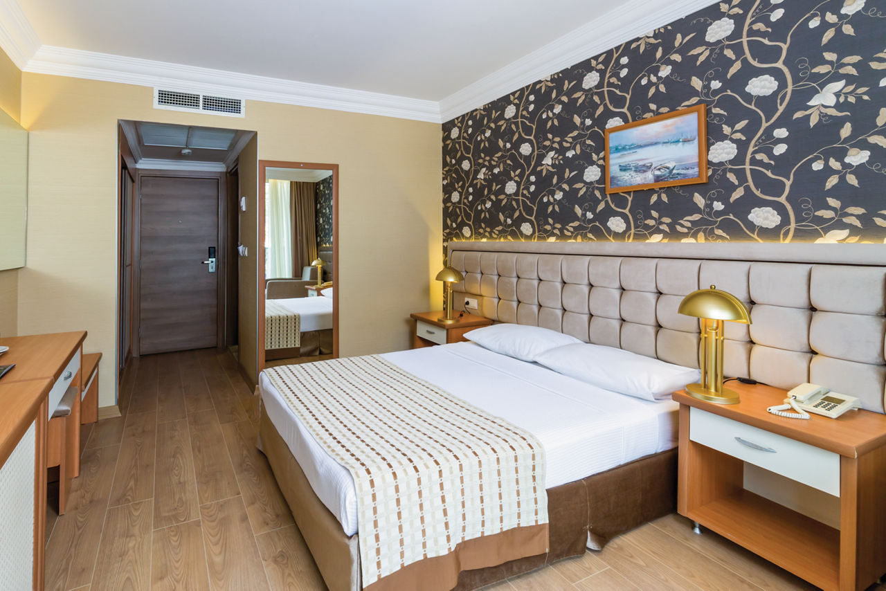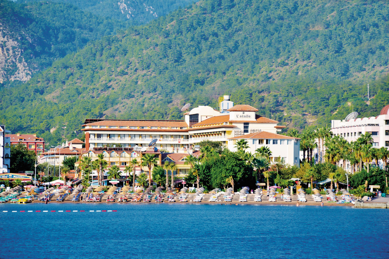 With an enviable location close to both the beach and the centre of Icmeler, the L?Etoile Hotel is a great all inclusive option offering fantastic value for money. The hotel has a range of facilities for all ages and a large pool for days spent soaking up the sun, making this a super choice for adults and families who want a hotel with plenty on offer plus a great location!Double and Twin rooms sleep up to 3 adults or 2 adults and 1 child and have a bathroom with shower, hairdryer, air conditioning, satellite TV and a balcony or terrace. Double and Twin room for Sole Use are also available.