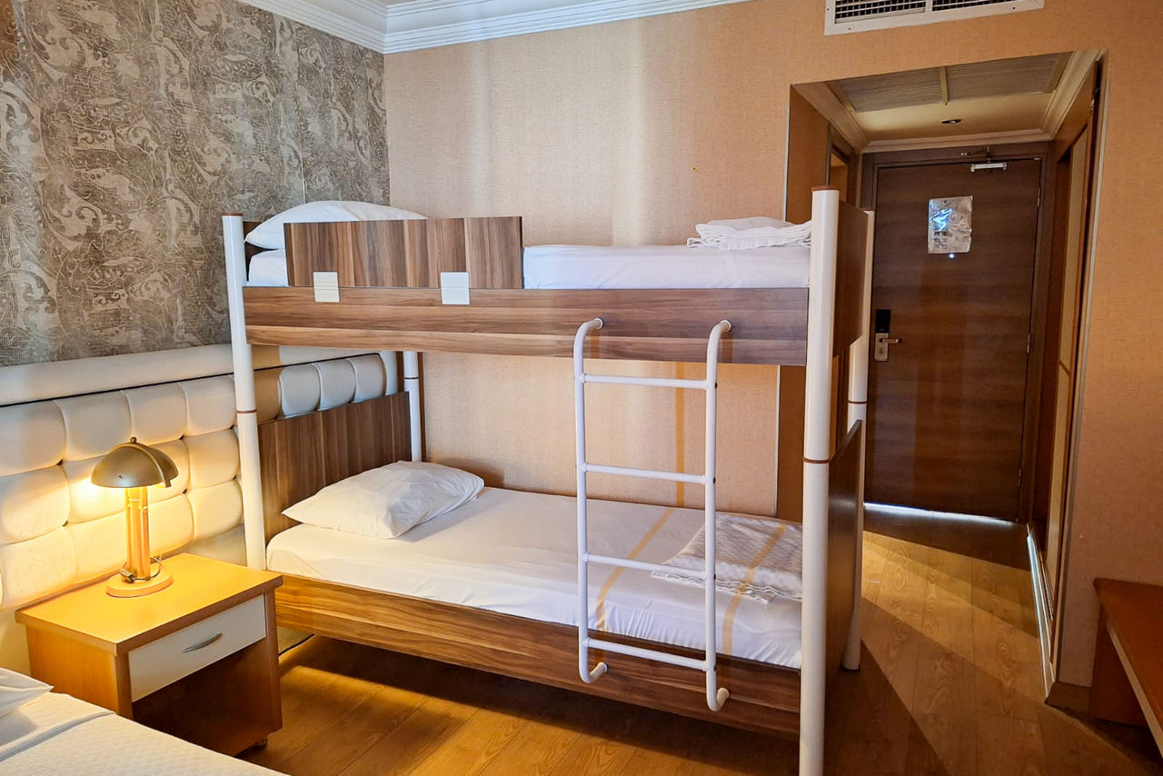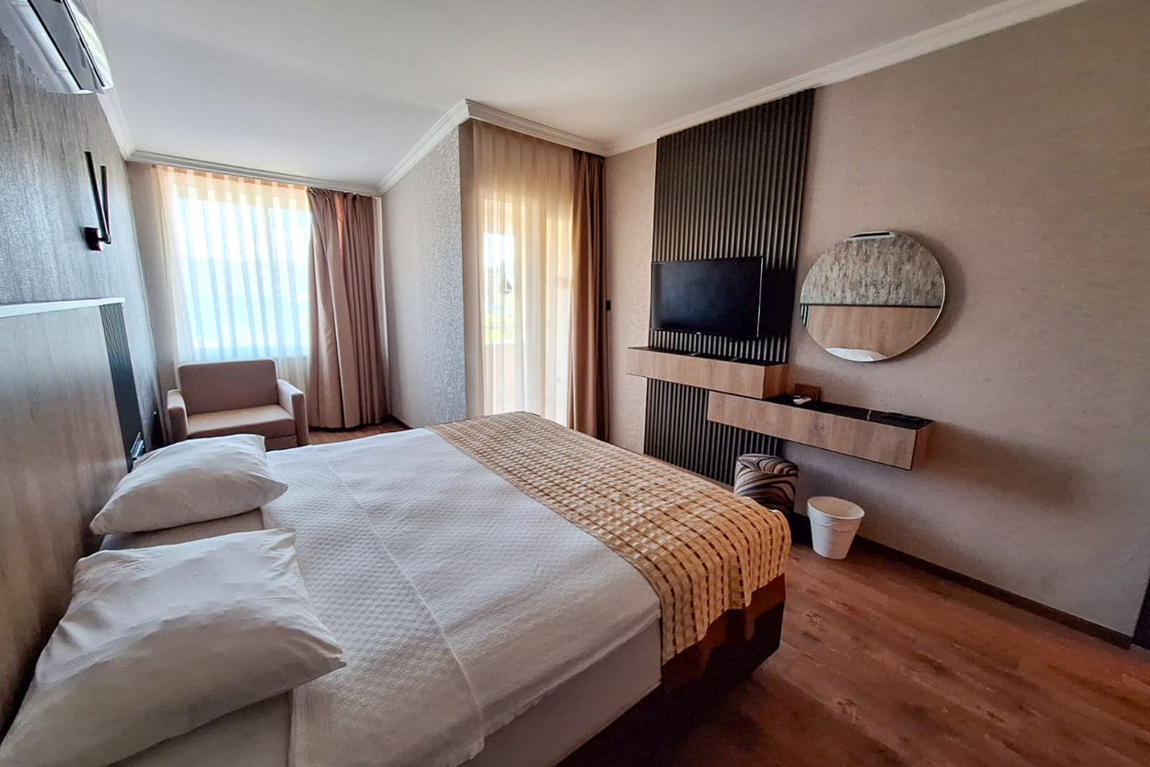 Double and Twin rooms sleep up to 3 adults or 2 adults and 1 child and have a bathroom with shower, hairdryer, air conditioning, satellite TV and a balcony or terrace. Double and Twin room for Sole Use are also available.